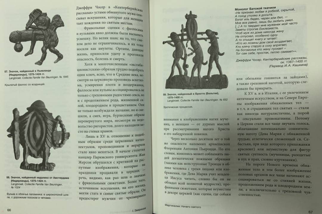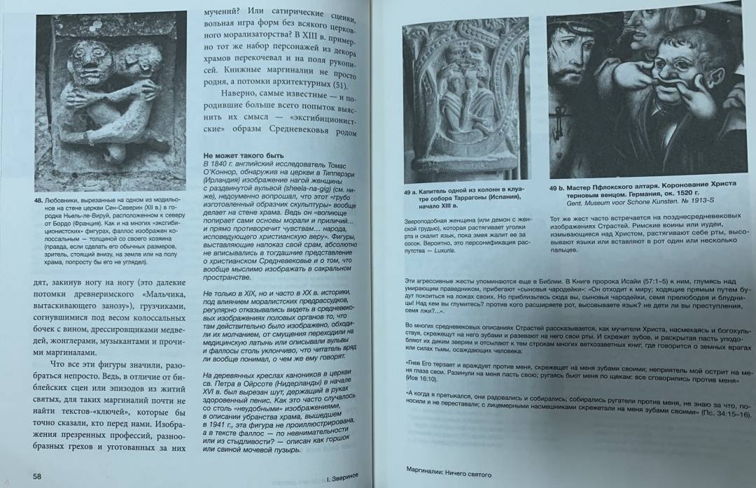 ОписаниеЭта книга расскажет о том, как в христианской иконографии священное переплеталось с комичным, монструозным и непристойным. Многое из того, что сегодня кажется возмутительным святотатством, в Средневековье, эпоху почти всеобщей религиозности, было вполне в порядке вещей.Речь пойдёт об обезьянах на полях древних текстов, непристойных фигурах на стенах церквей и о святых в монструозном обличье. Откуда взялись эти образы, и как они связаны с последующим развитием мирового искусства?Первый на русском языке научно-популярный текст, охватывающий столько сюжетов средневековой иконографии, выходит по инициативе «Страдающего Средневековья» – сообщества любителей истории, объединившего почти полмиллиона подписчиков. Более 600 иллюстраций, уникальный текст и немного юмора — вот так и следует говорить об искусстве.Эта книга расскажет о том, как в христианской иконографии священное переплеталось с комичным, монструозным и непристойным. Многое из того, что сегодня кажется возмутительным святотатством, в Средневековье, эпоху почти всеобщей религиозности, было вполне в порядке вещей.Речь пойдёт об обезьянах на полях древних текстов, непристойных фигурах на стенах церквей и о святых в монструозном обличье. Откуда взялись эти образы, и как они связаны с последующим развитием мирового искусства?Первый на русском языке научно-популярный текст, охватывающий столько сюжетов средневековой иконографии, выходит по инициативе «Страдающего Средневековья» – сообщества любителей истории, объединившего почти полмиллиона подписчиков. Более 600 иллюстраций, уникальный текст и немного юмора — вот так и следует говорить об искусстве.