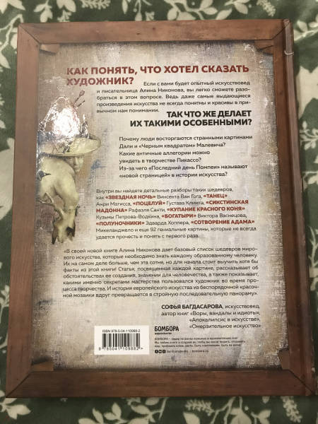 В книге вас ждут разборы таких шедевров, как «Звездная ночь» Винсента Ван Гога, «Танец», Анри Матисса, «Поцелуй» Густава Климта, «Сикстинская Мадонна» Рафаэля
