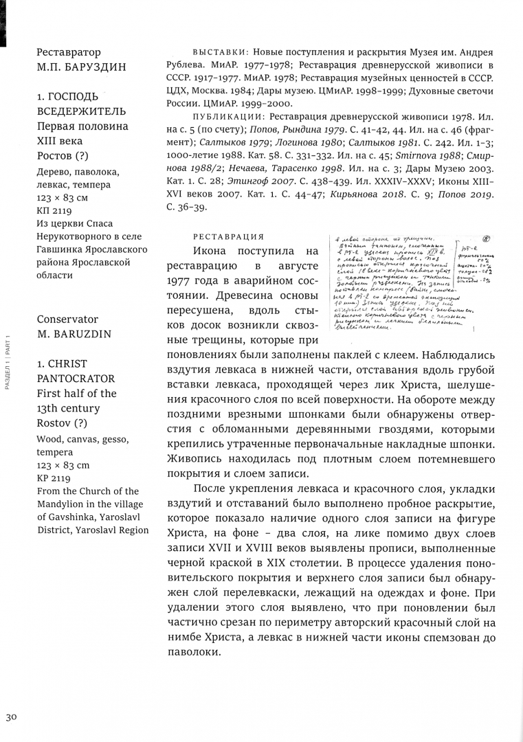 ОписаниеКаталог состоит из двух разделов. В первом - произведения, отреставрированные сотрудниками мастерской, работавшими в ней с момента основания музея до 2015 года. Во втором разделе – произведения, отреставрированные с 2016 года ныне работающими сотрудниками. Также в каталог включены составленные реставраторами описания самого процесса реставрации: в каком состоянии памятники поступили, с какими сложностями пришлось столкнуться в процессе работы над ними. В приложении даны краткие биографические сведения о реставраторах, чьи работы приведены в издании.Составители О.В. Смирнова, О.Е. Труфанова.Каталог состоит из двух разделов. В первом - произведения, отреставрированные сотрудниками мастерской, работавшими в ней с момента основания музея до 2015 года. Во втором разделе – произведения, отреставрированные с 2016 года ныне работающими сотрудниками. Также в каталог включены составленные реставраторами описания самого процесса реставрации: в каком состоянии памятники поступили, с какими сложностями пришлось столкнуться в процессе работы над ними. В приложении даны краткие биографические сведения о реставраторах, чьи работы приведены в издании.Составители О.В. Смирнова, О.Е. Труфанова.