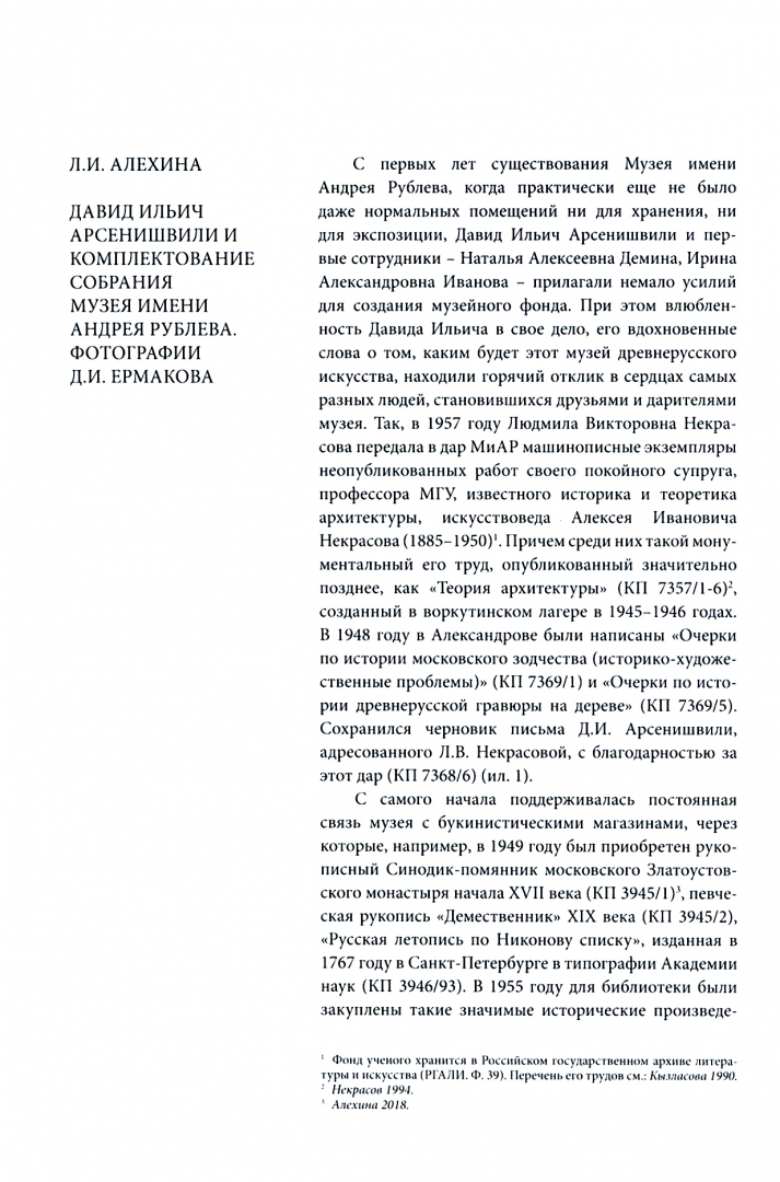 ОписаниеНаучные чтения памяти Д. И. Арсенишвили - значимый проект в рамках научной и образовательной деятельности музея, ежегодно привлекающий как известных ученых, так и молодых талантливых специалистов. Важнейшие темы сборника составили исследования, посвященные деятельности крупнейшего исследователя древнерусской культуры М. В. Алпатова. Выделяются работы, освещающие духовное и культурное сотрудничество России и Грузии, памятники византийского искусства, страницы неизвестной истории Музея имени Андрея Рублева. По сложившейся традиции в сборник вошли исследования аспектов как древней, так и новейшей истории культуры наших стран, а также жизни и деятельности выдающихся исследователей.Научные чтения памяти Д. И. Арсенишвили - значимый проект в рамках научной и образовательной деятельности музея, ежегодно привлекающий как известных ученых, так и молодых талантливых специалистов. Важнейшие темы сборника составили исследования, посвященные деятельности крупнейшего исследователя древнерусской культуры М. В. Алпатова. Выделяются работы, освещающие духовное и культурное сотрудничество России и Грузии, памятники византийского искусства, страницы неизвестной истории Музея имени Андрея Рублева. По сложившейся традиции в сборник вошли исследования аспектов как древней, так и новейшей истории культуры наших стран, а также жизни и деятельности выдающихся исследователей.
