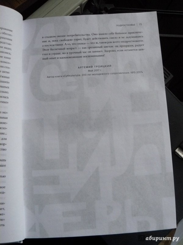 ОписаниеУ каждой истории есть начало. Британский публицист Джон Сэвидж рассказывает захватывающую историю становления и формирования молодёжной культуры со второй половины XIX века и вплоть до 1945 года, когда в оборот официально вошло слово "тинейджер". Автор рассказывает о Лондоне, Нью-Йорке, Париже и Берлине времен банд, хулиганов и апашей. Исследует природу первых молодежных объединений от бойскаутов и "Вандерфогеля" до гитлерюгенда. Ищет вечную молодость с Питером Пэном и исследует свободную любовь с Рупертом Бруком. Рассказывает о флэпперах, зутерах, золотой молодёжи, молодых безработных времен Великой Депрессии. О музыкальных жанрах, танцах, кумирах своего времени и модных поветриях.Предисловие к русскому изданию написал Артемий Троицкий.У каждой истории есть начало. Британский публицист Джон Сэвидж рассказывает захватывающую историю становления и формирования молодёжной культуры со второй половины XIX века и вплоть до 1945 года, когда в оборот официально вошло слово "тинейджер". Автор рассказывает о Лондоне, Нью-Йорке, Париже и Берлине времен банд, хулиганов и апашей. Исследует природу первых молодежных объединений от бойскаутов и "Вандерфогеля" до гитлерюгенда. Ищет вечную молодость с Питером Пэном и исследует свободную любовь с Рупертом Бруком. Рассказывает о флэпперах, зутерах, золотой молодёжи, молодых безработных времен Великой Депрессии. О музыкальных жанрах, танцах, кумирах своего времени и модных поветриях.Предисловие к русскому изданию написал Артемий Троицкий.