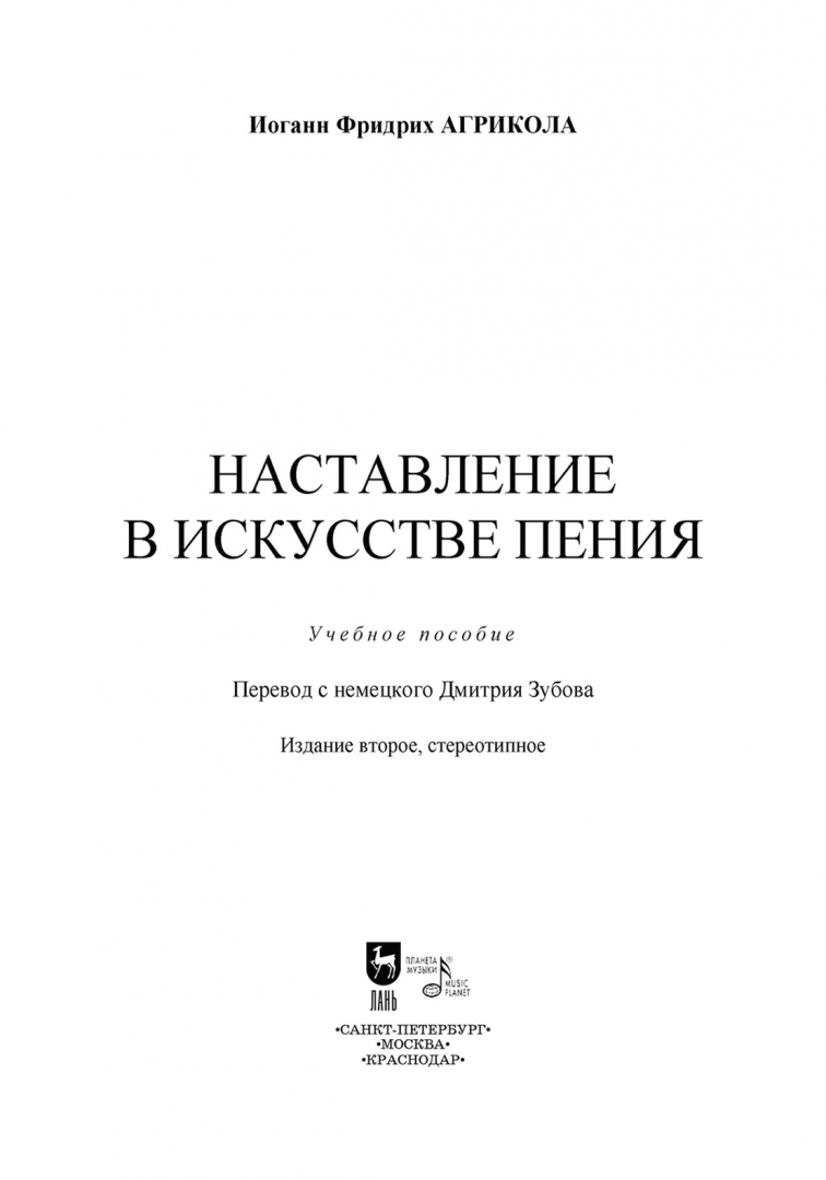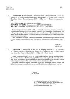 ОписаниеИоганн Фридрих Агрикола (1720-1774) - немецкий композитор, органист, музыковед. Его труд "Наставление в искусстве пения" ("Anleitung zur Gesangskunst") представляет собой переведенную, обработанную, дополненную и снабженную собственными комментариями книгу Пьера Франческо Този, итальянского певца и композитора. На русском языке сочинение издается впервые. Книга адресована студентам и педагогам вокальных отделений музыкальных колледжей и вузов, певцам, музыковедам, а также всем интересующимся историей вокального искусства.2-е издание, стереотипное.Иоганн Фридрих Агрикола (1720-1774) - немецкий композитор, органист, музыковед. Его труд "Наставление в искусстве пения" ("Anleitung zur Gesangskunst") представляет собой переведенную, обработанную, дополненную и снабженную собственными комментариями книгу Пьера Франческо Този, итальянского певца и композитора. На русском языке сочинение издается впервые. Книга адресована студентам и педагогам вокальных отделений музыкальных колледжей и вузов, певцам, музыковедам, а также всем интересующимся историей вокального искусства.2-е издание, стереотипное.