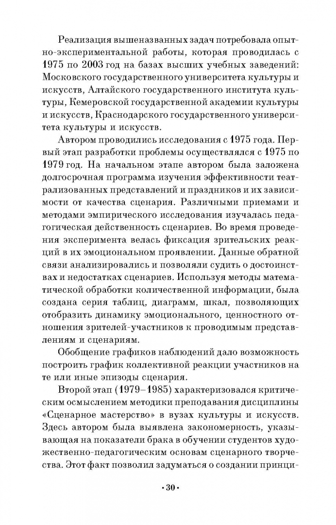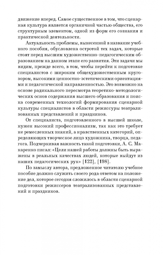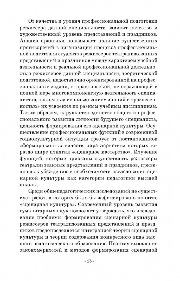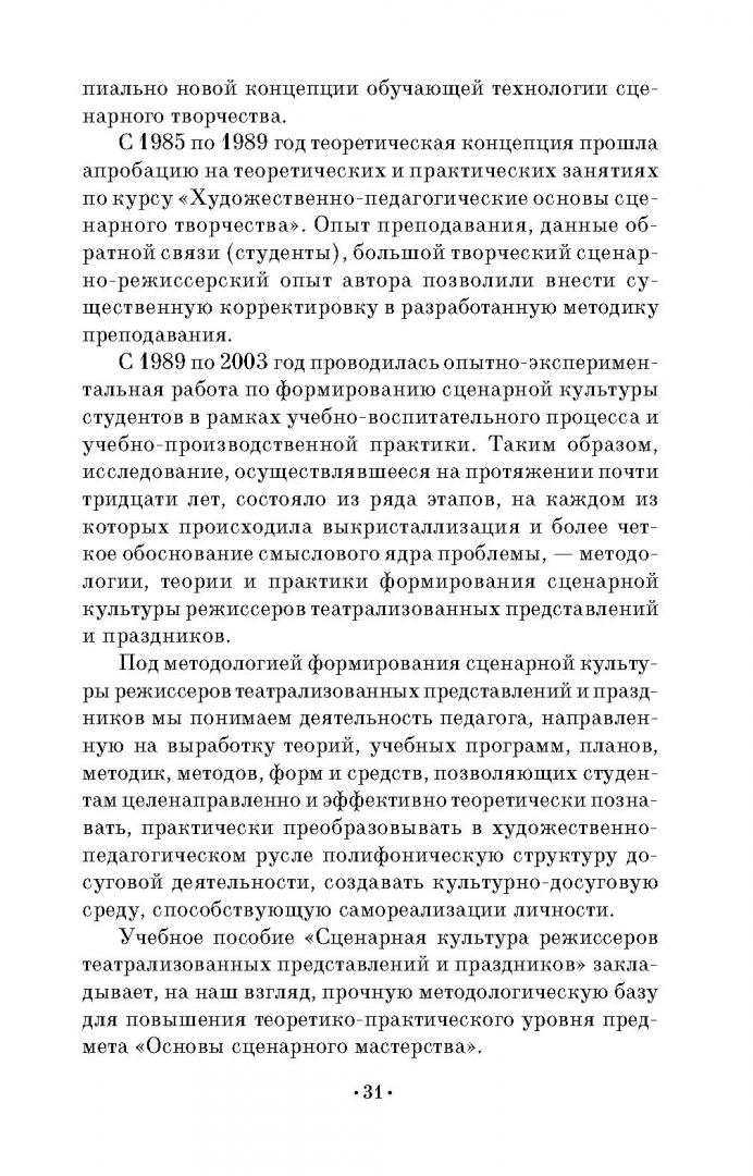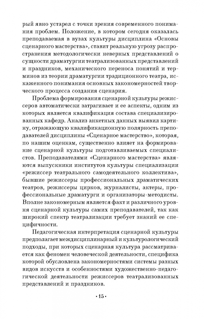 ОписаниеВ учебном пособии доктора педагогических наук, профессора кафедры театрального искусства КГИК обобщен и систематизирован уникальный опыт автора в обучающей сценарной технологии, формирующей сценарную культуру режиссеров театрализованных представлений. В работе аргументированно обосновываются границы размежевания между театральными постановками и театрализованными представлениями.Книга адресована студентам и преподавателям институтов культуры и театральных учебных заведений.В учебном пособии доктора педагогических наук, профессора кафедры театрального искусства КГИК обобщен и систематизирован уникальный опыт автора в обучающей сценарной технологии, формирующей сценарную культуру режиссеров театрализованных представлений. В работе аргументированно обосновываются границы размежевания между театральными постановками и театрализованными представлениями.Книга адресована студентам и преподавателям институтов культуры и театральных учебных заведений.