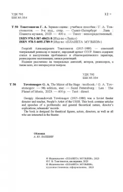 ОписаниеГеоргий Александрович Товстоногов (1915-1989) - советский театральный режиссер и педагог, народный артист СССР. Данная книга является вторым томом серии "Зеркало сцены" и содержит статьи и выступления проблемного и общетеоретического характера, режиссерские экспликации, записи репетиций. Первый том содержит статьи, опубликованные в книге "О профессии режиссера".Издание рассчитано на театральных деятелей, актеров, режиссеров, а также всех, кто интересуется театром.9-е издание, стереотипное.Георгий Александрович Товстоногов (1915-1989) - советский театральный режиссер и педагог, народный артист СССР. Данная книга является вторым томом серии "Зеркало сцены" и содержит статьи и выступления проблемного и общетеоретического характера, режиссерские экспликации, записи репетиций. Первый том содержит статьи, опубликованные в книге "О профессии режиссера".Издание рассчитано на театральных деятелей, актеров, режиссеров, а также всех, кто интересуется театром.9-е издание, стереотипное.