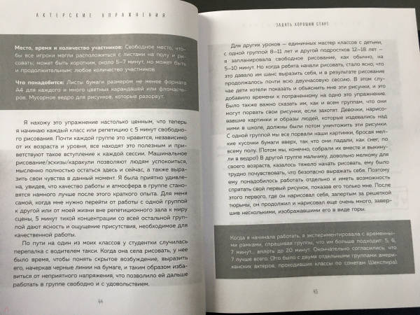 ОписаниеЭто практическое пособие для актеров и их учителей, написанное опытной преподавательницей лондонской Королевской академии драматического искусства Бриджид Пэнет. С помощью этой книги вы сможете изучить техники игры на сцене, опираясь на активные упражнения и пережитый опыт. Автор познакомит вас с основами Метода физических действий Станиславского, интегрированного с терминологией действий по системе Лабана. Таким образом вы сможете усвоить оба подхода к актерской игре одновременно, значительно расширив спектр физической и вокальной выразительности.Изучив эту книгу, вы узнаете не только, как грамотно выстраивать репетиции и добиваться правдивых чувств на сцене, но и как успешно поступить в театральную школу.Это практическое пособие для актеров и их учителей, написанное опытной преподавательницей лондонской Королевской академии драматического искусства Бриджид Пэнет. С помощью этой книги вы сможете изучить техники игры на сцене, опираясь на активные упражнения и пережитый опыт. Автор познакомит вас с основами Метода физических действий Станиславского, интегрированного с терминологией действий по системе Лабана. Таким образом вы сможете усвоить оба подхода к актерской игре одновременно, значительно расширив спектр физической и вокальной выразительности.Изучив эту книгу, вы узнаете не только, как грамотно выстраивать репетиции и добиваться правдивых чувств на сцене, но и как успешно поступить в театральную школу.