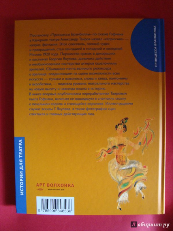 ОписаниеПостановку "Принцессы Брамбиллы" по сказке Гофмана в Камерном театре Александр Таиров назвал "каприччио" - каприз, фантазия. Этот спектакль, полный чудес и превращений, стал сенсацией в голодной и холодной Москве 1920 года. Пиршество красок в декорациях и костюмах Георгия Якулова, динамика действия и необыкновенное мастерство актеров ошеломляли зрителей. Сбывшаяся мечта великого режиссера о зрелище, соединяющем на сцене возможности всех искусств - музыки и живописи, слова и танца, пантомимы и акробатики, - подняла уровень театрального мастерства на новую высоту и навсегда вошла в историю.В книге впервые опубликована переработанная Таировым пьеса Гофмана, включая не вошедшую в спектакль сказку о печальном короле и смеющейся королеве. Иллюстрациями служат эскизы Г. Якулова, а также фотографии сцен спектакля и главных действующих лиц.Постановку "Принцессы Брамбиллы" по сказке Гофмана в Камерном театре Александр Таиров назвал "каприччио" - каприз, фантазия. Этот спектакль, полный чудес и превращений, стал сенсацией в голодной и холодной Москве 1920 года. Пиршество красок в декорациях и костюмах Георгия Якулова, динамика действия и необыкновенное мастерство актеров ошеломляли зрителей. Сбывшаяся мечта великого режиссера о зрелище, соединяющем на сцене возможности всех искусств - музыки и живописи, слова и танца, пантомимы и акробатики, - подняла уровень театрального мастерства на новую высоту и навсегда вошла в историю.В книге впервые опубликована переработанная Таировым пьеса Гофмана, включая не вошедшую в спектакль сказку о печальном короле и смеющейся королеве. Иллюстрациями служат эскизы Г. Якулова, а также фотографии сцен спектакля и главных действующих лиц.