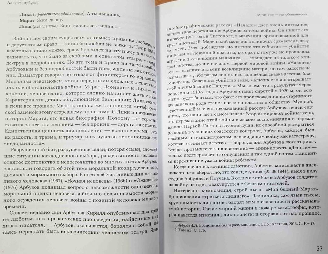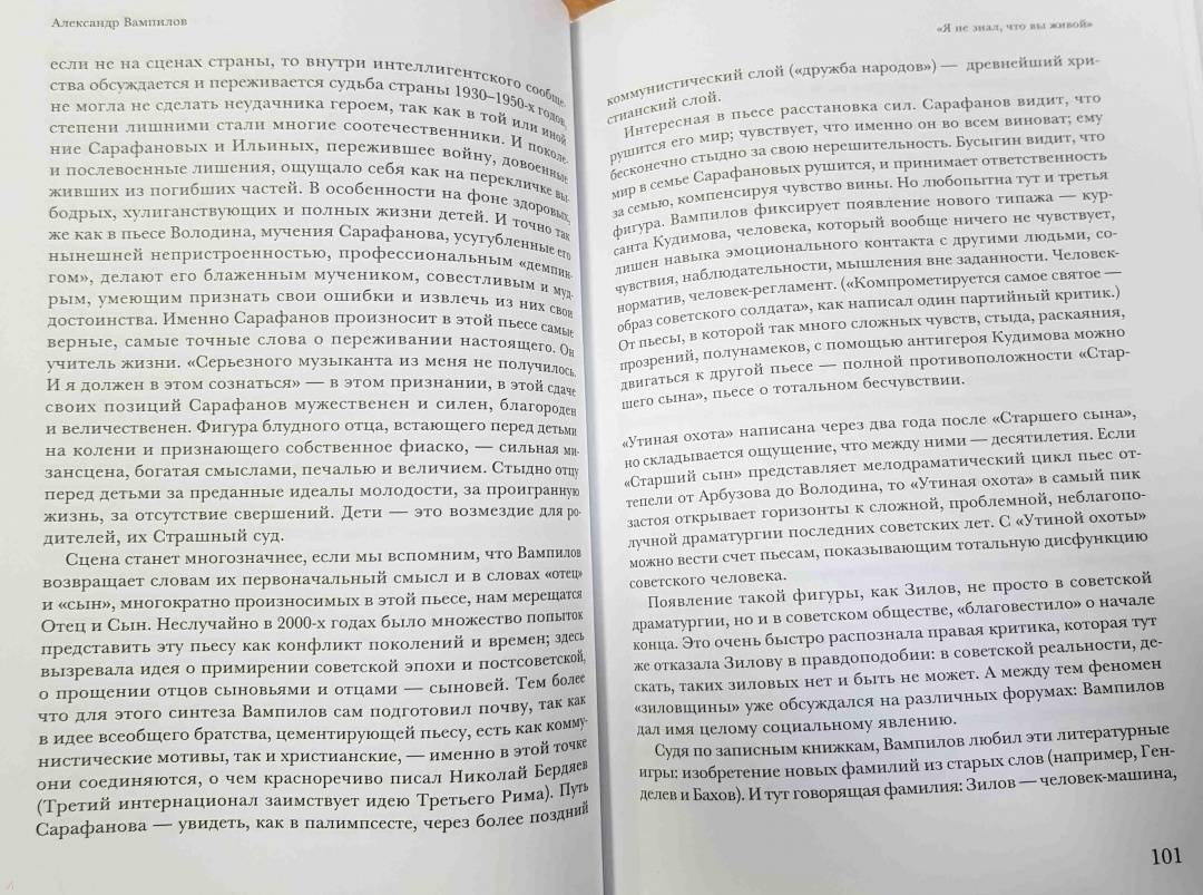 ОписаниеВ монографии предпринята попытка представить картину советской послевоенной и постсоветской драматургии с 1950-х годов до наших дней, от В. Розова до И. Васьковской. У автора две задачи: взглянуть на развитие советской драматургии с точки зрения человека начала XXI века, когда канон советского театра более не властен над нынешней театральной реальностью, и поддержать идею непрерывности развития современной пьесы в России. Исследователь опровергает мнение о пропасти между поколениями и подчеркивает, что художественные и нравственные искания авторов советского периода не прерваны, а находят продолжение в драматургии новейшего времени. Книга представляет имена не только известных (А. Арбузов, А. Вампилов, Л. Петрушевская, В. Ерофеев, Н. Коляда, Е. Гришковец, В. Сигарев и другие, но и почти забытых авторов. Некоторые главы посвящены отдельным явлениям - производственной пьесе, "усадебной драматургии", "новой драме", документальному театру и т.д. П. Руднев - театральный критик, кандидат искусствоведения, помощник художественного руководителя МХТ им. А.П. Чехова и ректора Школы-студии МХАТ по спецпроектам. Автор монографии "Театральные взгляды Василия Розанова" (2003).Книга подготовлена при содействии Фестиваля "Золотая Маска".СвернутьВ монографии предпринята попытка представить картину советской послевоенной и постсоветской драматургии с 1950-х годов до наших дней, от В. Розова до И. Васьковской. У автора две задачи: взглянуть на развитие советской драматургии с точки зрения человека начала XXI века, когда канон советского театра более не властен над нынешней театральной реальностью, и поддержать идею непрерывности развития современной пьесы в России. Исследователь опровергает мнение о пропасти между поколениями и подчеркивает, что художественные и нравственные искания авторов советского периода не прерваны, а находят продолжение в драматургии новейшего времени. Книга представляет имена не только известных (А. Арбузов, А. Вампилов, Л. Петрушевская, В. Ерофеев, Н. Коляда, Е. Гришковец, В. Сигарев и другие, но и почти забытых авторов. Некоторые главы посвящены отдельным явлениям - производственной пьесе, "усадебной драматургии", "новой драме", документальному театру и т.д. П. Руднев - театральный критик, кандидат искусствоведения, помощник художественного руководителя МХТ им. А.П. Чехова и ректора Школы-студии МХАТ по спецпроектам. Автор монографии "Театральные взгляды Василия Розанова" (2003).Книга подготовлена при содействии Фестиваля "Золотая Маска".СвернутьСвернуть