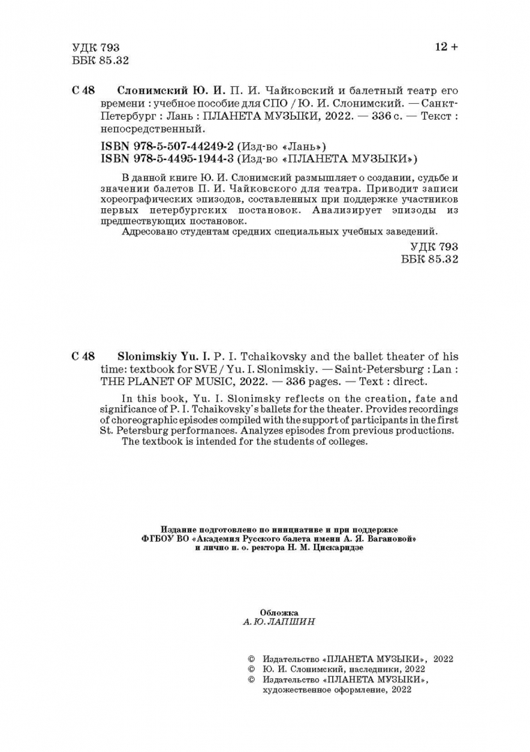 Объем, стр. 336 ISBN 978-5-507-44249-2 Автор Слонимский Юрий Иосифович Серия Балет и хореографическое искусство Язык Русский Минимальный возраст 12+ Год издания книги 2022 Тип обложки Твердый переплет Иллюстрации Без иллюстраций Вес, г 445г Размеры 217х153х20 мм - Отзывы