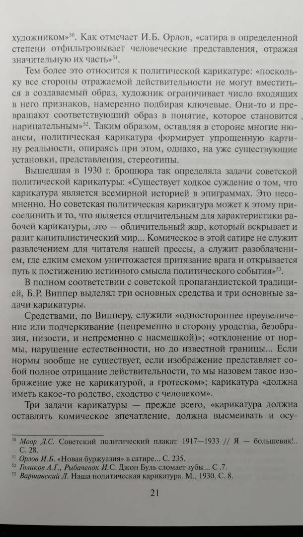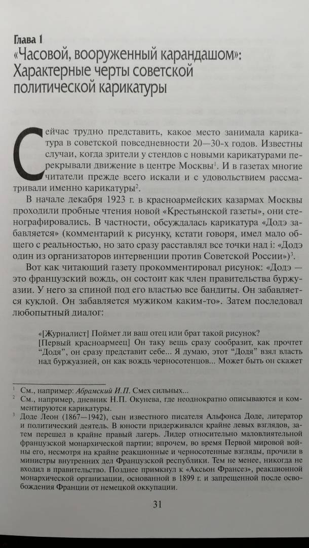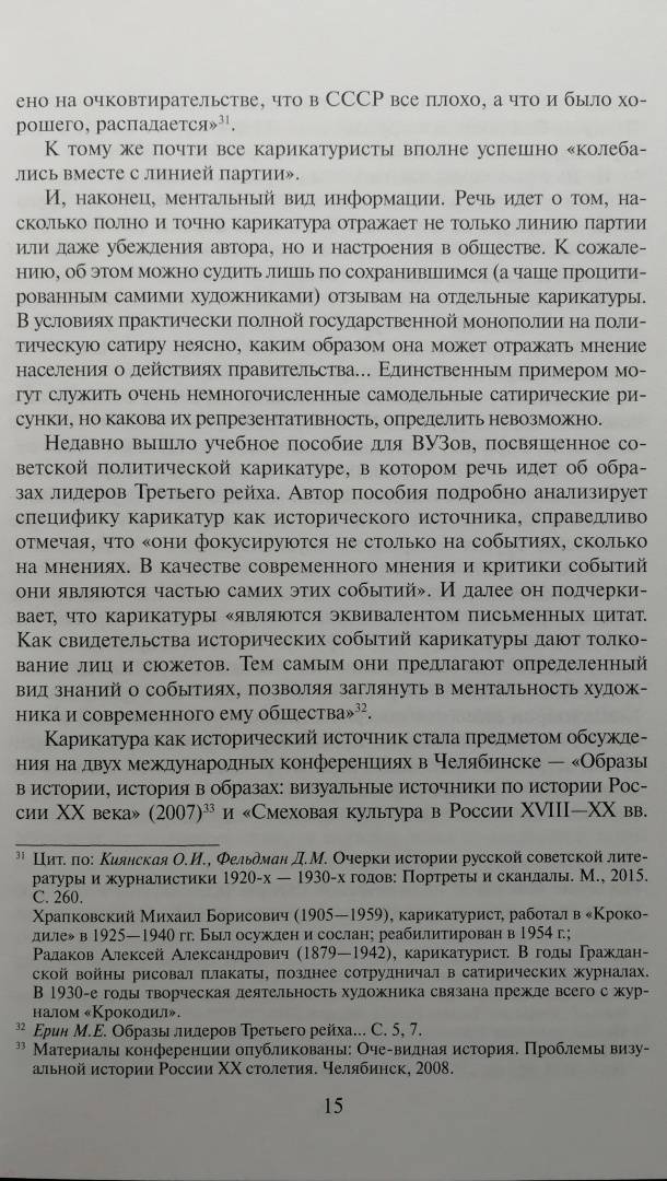 ОписаниеСоветская политическая карикатура рассматривается в монографии как целостный феномен с точки зрения ее содержания, художественных особенностей, тематической и пропагандистской направленности. На основании различных источников, в том числе вновь вводимых в оборот архивных документов, предпринята попытка выявить и проанализировать механизмы создания карикатур, взаимоотношения сатирика и власти, динамику изменения содержания карикатур в зависимости от ситуации в стране и в мире. Второе направление исследования - выявление образов, формируемых политической карикатурой в массовом сознании, и, насколько позволяют имеющиеся источники, анализ этих образов.Советская политическая карикатура рассматривается в монографии как целостный феномен с точки зрения ее содержания, художественных особенностей, тематической и пропагандистской направленности. На основании различных источников, в том числе вновь вводимых в оборот архивных документов, предпринята попытка выявить и проанализировать механизмы создания карикатур, взаимоотношения сатирика и власти, динамику изменения содержания карикатур в зависимости от ситуации в стране и в мире. Второе направление исследования - выявление образов, формируемых политической карикатурой в массовом сознании, и, насколько позволяют имеющиеся источники, анализ этих образов.