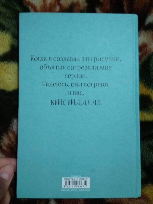 ОписаниеЭта коллекция объятий от известного британского иллюстратора и писателя Криса Ридделла поднимет настроение вам и вашим близким! Трогательные, смешные, удивительные, ужасные и прекрасные персонажи, нарисованные автором, заключают друг друга в объятия - и напоминают всем нам, что это лучший способ сказать о любви. Вдохновляйтесь иллюстрациями Ридделла и делитесь своими мыслями и рисунками на страницах в конце книги.Эта коллекция объятий от известного британского иллюстратора и писателя Криса Ридделла поднимет настроение вам и вашим близким! Трогательные, смешные, удивительные, ужасные и прекрасные персонажи, нарисованные автором, заключают друг друга в объятия - и напоминают всем нам, что это лучший способ сказать о любви. Вдохновляйтесь иллюстрациями Ридделла и делитесь своими мыслями и рисунками на страницах в конце книги.
