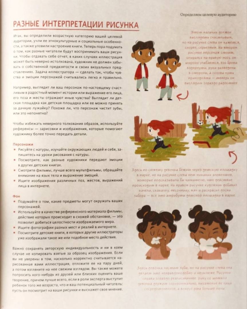 ОписаниеЯркая, вдохновляющая и полезная книга, в которой известные детские иллюстраторы из разных стран делятся опытом создания историй для детей от 0 до 8 лет и раскрывают секреты своего мастерства.Книга научит создавать иллюстрации, отражающие ход повествования, рассказывать историю в картинках, используя для этого основные нарративные техники, удерживать внимание читателя с помощью правильного подбора цветов, понятности иллюстраций и их способности вызвать у читателя эмоциональный отклик, а также оптимального сочетания рисунков и текста.Вас ждут восемь историй, на примере которых мы показываем, каким может быть художественное оформление детских книг. Замечательные художники, мастера своего дела, не только проиллюстрировали эти истории, но и дали подробные комментарии.В конце книги вы найдете перечень основных издательских и художественных терминов с их толкованием — в случае необходимости вы сможете обратиться к этому словарю в любое время.От автораПосле окончания факультета графического дизайна я некоторое время занимался рекламой. Детские иллюстрированные книги я заново открыл для себя, когда зашел в книжный магазин поискать кое-какие материалы для анимационного проекта, над которым в ту пору работал. Взглянув на стеллажи, битком набитые книгами, я вдруг вспомнил свое детство и все те книжки с картинками, в чтение которых погружался с головой. В тот день во мне что-то перевернулось. Я сменил сферу деятельности и начал иллюстрировать детские книги как фрилансер.С тех пор прошло несколько лет. С моими рисунками издано уже более тридцати книг, две из которых написал я сам. Надеюсь, теперь я кое-что понимаю в создании детских книг. Даю вам честное слово: если иллюстрирование детских книг — новая для вас область или если вы хотите глубже изучить эту тему, тогда книга, которую вы сейчас держите в руках, будет для вас по-настоящему полезной.Крис Чаттертон, детский писатель и иллюстратор детских книгДля кого эта книгаДля всех профессиональных и начинающих художников-иллюстраторов.Для тех, кто хочет научиться рисовать для детей и с детьми.СвернутьЯркая, вдохновляющая и полезная книга, в которой известные детские иллюстраторы из разных стран делятся опытом создания историй для детей от 0 до 8 лет и раскрывают секреты своего мастерства.Книга научит создавать иллюстрации, отражающие ход повествования, рассказывать историю в картинках, используя для этого основные нарративные техники, удерживать внимание читателя с помощью правильного подбора цветов, понятности иллюстраций и их способности вызвать у читателя эмоциональный отклик, а также оптимального сочетания рисунков и текста.Вас ждут восемь историй, на примере которых мы показываем, каким может быть художественное оформление детских книг. Замечательные художники, мастера своего дела, не только проиллюстрировали эти истории, но и дали подробные комментарии.В конце книги вы найдете перечень основных издательских и художественных терминов с их толкованием — в случае необходимости вы сможете обратиться к этому словарю в любое время.От автораПосле окончания факультета графического дизайна я некоторое время занимался рекламой. Детские иллюстрированные книги я заново открыл для себя, когда зашел в книжный магазин поискать кое-какие материалы для анимационног