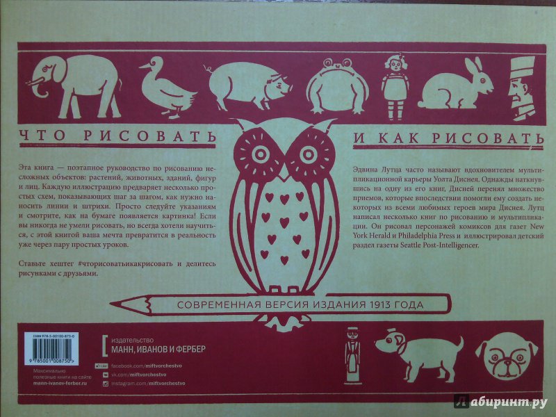 ОписаниеО книге Следуя простым схемам этой очаровательной книги, вы сможете создавать свои собственные прекрасные рисунки. Просто повторяйте каждую схему в серии картинок и наблюдайте, как они ведут вас к последней, показывая, каким образом каждая новая линия помогает вам выполнить оригинальный рисунок. От животных и растений до людей и домов, в которых они живут. "Что и как рисовать" - это поэтапное руководство к созданию простых иллюстраций.Э. Лютца часто называют вдохновителем мультипликационной карьеры Уолта Диснея. Однажды наткнувшись на одну из его книг, Дисней перенял множество приемов, которые впоследствии помогли ему придумать некоторых из всеми любимых героев мира Диснея. Лютц написал ряд книг по рисованию и мультипликации и рисовал персонажей комиксов для газет New York Herald и Philadelphia Press. Он также иллюстрировал детский раздел газеты Seattle Post-Intelligencer.Для кого эта книгаДля всех, кто хочет узнать азы изобразительного искусства и начать рисовать.Об автореБудучи блестящим газетным обозревателем, Эдвин Лутц занимался мультипликацией, был художником-анималистом и конструировал оптические игрушки, предназначенные детям для самостоятельного вырезания и склеивания.СвернутьО книге Следуя простым схемам этой очаровательной книги, вы сможете создавать свои собственные прекрасные рисунки. Просто повторяйте каждую схему в серии картинок и наблюдайте, как они ведут вас к последней, показывая, каким образом каждая новая линия помогает вам выполнить оригинальный рисунок. От животных и растений до людей и домов, в которых они живут. "Что и как рисовать" - это поэтапное руководство к созданию простых иллюстраций.Э. Лютца часто называют вдохновителем мультипликационной карьеры Уолта Диснея. Однажды наткнувшись на одну из его книг, Дисней перенял множество приемов, которые впоследствии помогли ему придумать некоторых из всеми любимых героев мира Диснея. Лютц написал ряд книг по рисованию и мультипликации и рисовал персонажей комиксов для газет New York Herald и Philadelphia Press. Он также иллюстрировал детский раздел газеты Seattle Post-Intelligencer.Для кого эта книгаДля всех, кто хочет узнать азы изобразительного искусства и начать рисовать.Об автореБудучи блестящим газетным обозревателем, Эдвин Лутц занимался мультипликацией, был художником-анималистом и конструировал оптические игрушки, предназначенные детям для самостоятельного вырезания и склеивания.СвернутьСвернуть