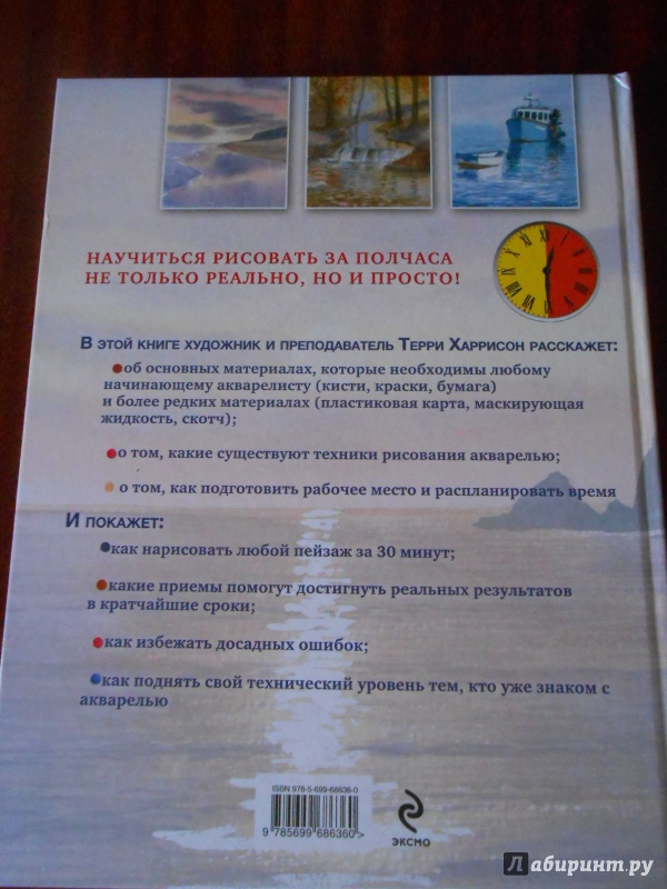 ОписаниеВ этом пособии талантливый художник и преподаватель Терри Харрисон расскажет, как научиться создавать великолепные акварельные пейзажи всего за полчаса. Легкий язык, доходчивые объяснения, пошаговые задания и выразительные иллюстрации помогут быстро овладеть техникой рисования акварелью. Также в книге есть блок теоретических сведений о разных видах кистей и бумаги, что делает обучение еще более быстрым!В этом пособии талантливый художник и преподаватель Терри Харрисон расскажет, как научиться создавать великолепные акварельные пейзажи всего за полчаса. Легкий язык, доходчивые объяснения, пошаговые задания и выразительные иллюстрации помогут быстро овладеть техникой рисования акварелью. Также в книге есть блок теоретических сведений о разных видах кистей и бумаги, что делает обучение еще более быстрым!