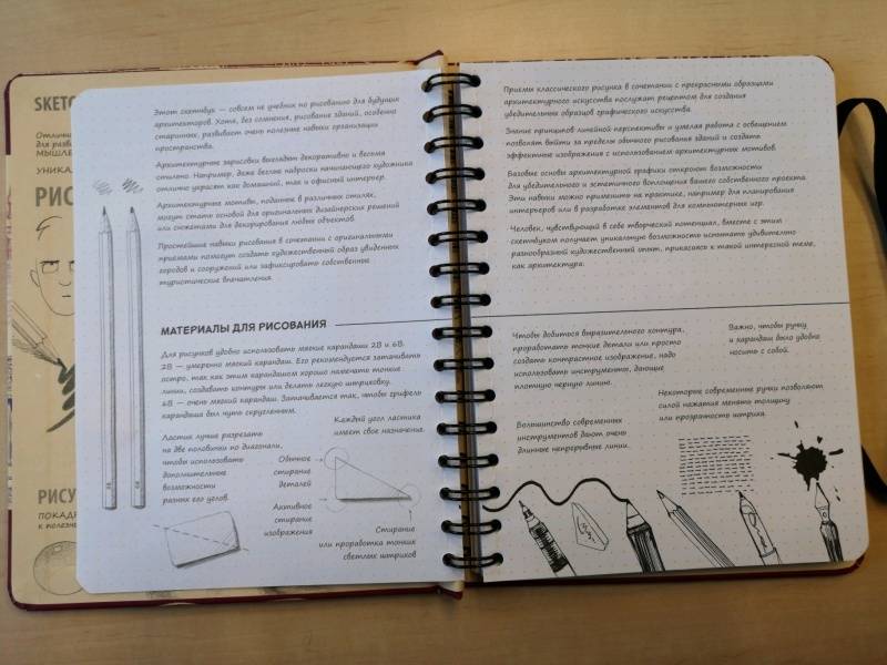 ОписаниеЧто вы найдете в этом скетчбуке? Разнообразные подходы к изображению архитектурных объектов - от набросков по впечатлениям от тури-стической поездки до первых вариантов создания собственных компьютерных миров. Планы и фасады зданий, акценты и детали в различных графических стилях - от эскизов до тщательных зарисовок. Приемы архитектурной графики, правила создания эффектной композиции, рекомендации по выгодной подаче объекта. Попутно имеется практическая возможность освоить множество полезных приемов по рисованию планов зданий и интерьеров и получить ценные советы по использованию приобретенных навыков в решении повседневных задач.Скетчбук комфортно сочетает в себе путеводитель по основам графики и творческую записную книжку с продуманной эргономикой. Он рассчитан на любой уровень подготовки. Удобный в использовании, скетчбук предназначен для современного, динамичного и требовательного пользователя. Поэтапные рисунки сопровождаются ненавязчивыми текстовыми пояснениями, есть место для личных записей, оставлены развороты для собственных проб в искусстве графики. Здесь можно писать, рисовать, обводить, обрисовывать, дорисовывать и закрашивать. Высококачественная бумага для художественных работ хорошо выдерживает многократное стирание ластиком. Можно свободно использовать цветные и графитовые карандаши, шариковые, гелевые или чернильные ручки, маркеры и даже акварельные краски.Скетчбук легко разворачивается на все 360 градусов, так что рисовать можно буквально на коленках. Он сразу удобно и ровно ложится на поверхность стола. Закрывается книга с помощью упругой резинки, которая способна фиксироваться как вертикально, так и горизонтально. Между пружинным креплением скетчбука можно хранить и переносить карандаш или ручку. Твердая обложка гарантирует сохранность скетчбука в презентабельном виде на всем протяжении его использования.СвернутьЧто вы найдете в этом скетчбуке? Разнообразные подходы к изображению архитектурных объектов - от набросков по впечатлениям от тури-стической поездки до первых вариантов создания собственных компьютерных миров. Планы и фасады зданий, акценты и детали в различных графических стилях - от эскизов до тщательных зарисовок. Приемы архитектурной графики, правила создания эффектной композиции, рекомендации по выгодной подаче объекта. Попутно имеется практическая возможность освоить множество полезных приемов по рисованию планов зданий и интерьеров и получить ценные советы по использованию приобретенных навыков в решении повседневных задач.Скетчбук комфортно сочетает в себе путеводитель по основам графики и творческую записную книжку с продуманной эргономикой. Он рассчитан на любой уровень подготовки. Удобный в использовании, скетчбук предназначен для современного, динамичного и требовательного пользователя. Поэтапные рисунки сопровождаются ненавязчивыми текстовыми пояснениями, есть место для личных записей, оставлены развороты для собственных проб в искусстве графики. Здесь можно писать, рисовать, обводить, обрисовывать, дорисовывать и закрашивать. Высококачественная бумага для художественных работ хорошо выдерживает многократное стирание ластиком. Можно свободно использовать цветные и графитовые карандаши, шариковые, гелевые или чернильные ручк