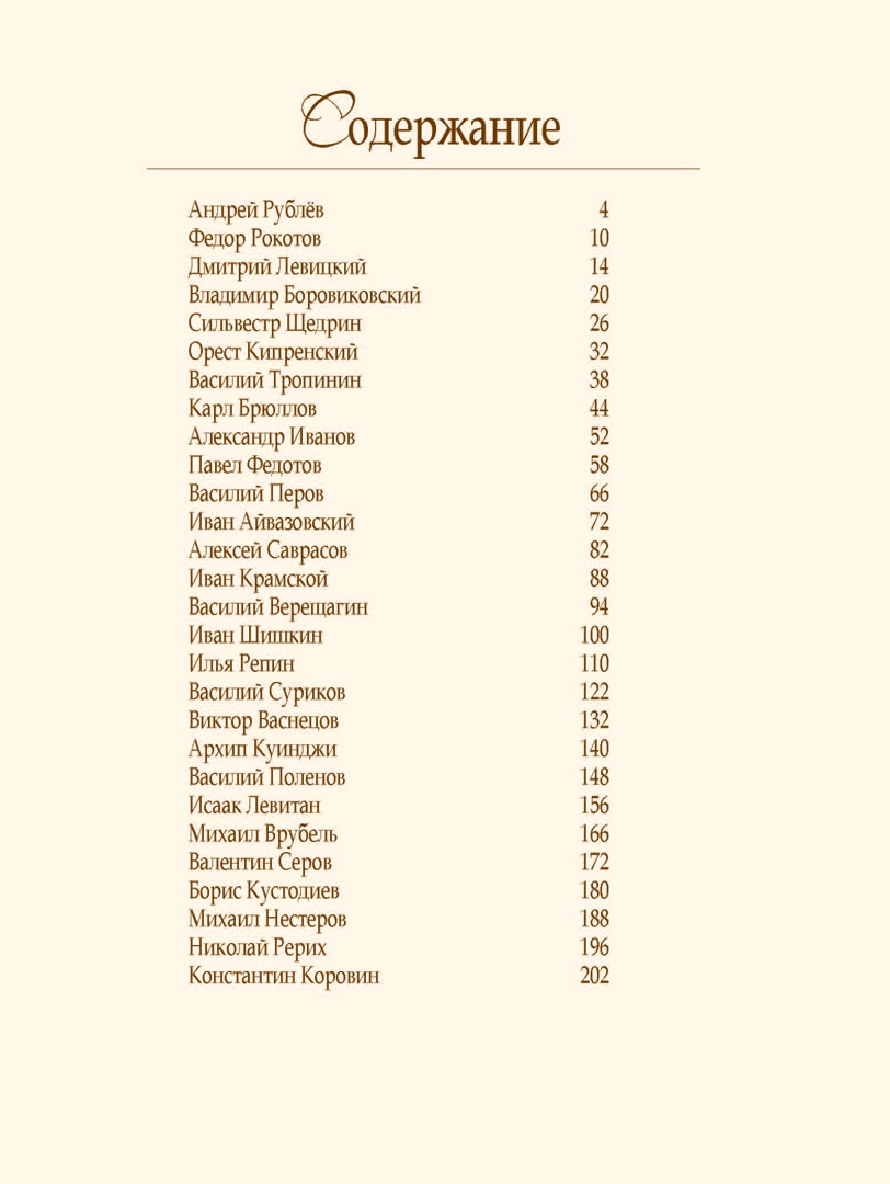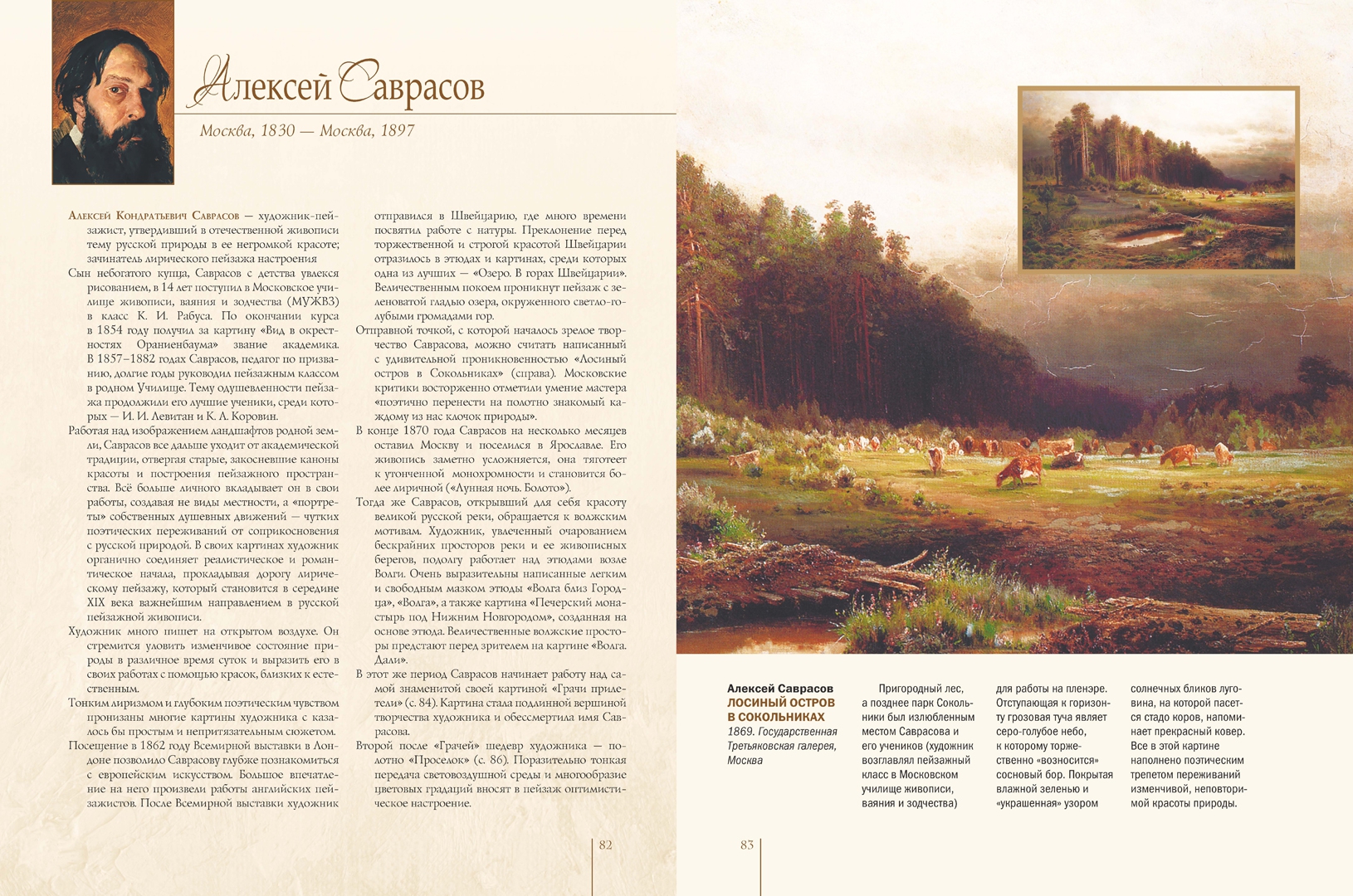 ОписаниеВ издание вошли самые выдающиеся, любимые зрителями картины русской живописи. Но это не только альбом с великолепными, качественными репродукциями. Наша книга поможет вам ближе познакомиться и с великими художниками - создателями этих прославленных полотен: помимо емких, содержательных комментариев к картинам в издании представлены статьи о жизни и творчестве знаменитых русских мастеров, составляющих гордость и славу не только отечественной, но и мировой культуры. Для широкого круга читателей.В издание вошли самые выдающиеся, любимые зрителями картины русской живописи. Но это не только альбом с великолепными, качественными репродукциями. Наша книга поможет вам ближе познакомиться и с великими художниками - создателями этих прославленных полотен: помимо емких, содержательных комментариев к картинам в издании представлены статьи о жизни и творчестве знаменитых русских мастеров, составляющих гордость и славу не только отечественной, но и мировой культуры. Для широкого круга читателей.