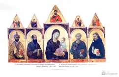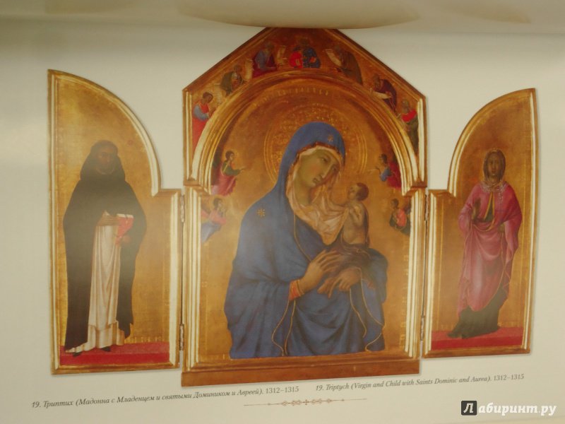 ОписаниеДуччо ди Буонинсенья жил в XIII веке. Суть его искусства заключалась в стремлении выйти за пределы традиционной византийской живописи, которая доминировала тогда в искусстве Сиены. Дуччо создал особый художественный стиль, который прославил его в веках.артин великого Дуччо ди Буонинсенья (упом. С 1278 – ок. 1319), уже при жизни носившем звание «лучшего художника современности», нет в российских музеях. И биографических сведений о нем почти не сохранилось. Дату рождения искусствоведы смогли вычислить лишь приблизительно: по первому заказу, который получил молодой художник. А его мог получить лишь тот, кто достиг зрелого возраста и живописного мастерства. Произведения Дуччо «Маэста» стали своего рода памятниками итальянской готической живописи, открытия которой привели к Ренессансным достижениям.Дуччо ди Буонинсенья жил в XIII веке. Суть его искусства заключалась в стремлении выйти за пределы традиционной византийской живописи, которая доминировала тогда в искусстве Сиены. Дуччо создал особый художественный стиль, который прославил его в веках.артин великого Дуччо ди Буонинсенья (упом. С 1278 – ок. 1319), уже при жизни носившем звание «лучшего художника современности», нет в российских музеях. И биографических сведений о нем почти не сохранилось. Дату рождения искусствоведы смогли вычислить лишь приблизительно: по первому заказу, который получил молодой художник. А его мог получить лишь тот, кто достиг зрелого возраста и живописного мастерства. Произведения Дуччо «Маэста» стали своего рода памятниками итальянской готической живописи, открытия которой привели к Ренессансным достижениям.