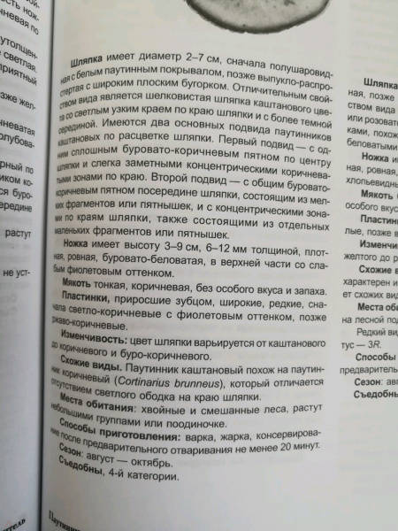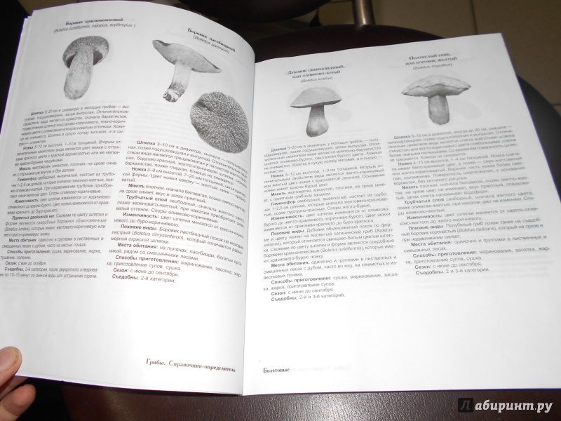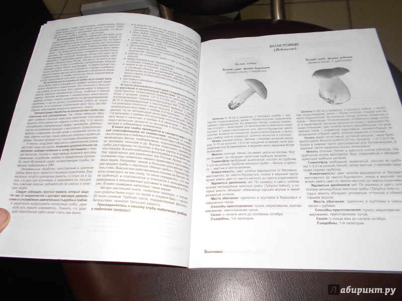 ОписаниеВ книге приводится описание 379 видов грибов, растущих на всей территории России, а также привозимых из-за рубежа, и широко продаваемых в магазинах. Текст иллюстрирован 1500 авторскими фотографиями грибов, которое показаны в разных ракурсах, в природных биотопах. Приведены характерные для каждого вида детали, поэтому представленный материал относится к классу определителей. Дается информация по описанию вида, по категориям съедобности, месту обитания, сезону произрастания, указываются ядовитые двойники. Грибы систематизированы по семействам, начиная от самого популярного семейства болетовых, куда входят белые, подосиновики, подберезовики, моховики, маслята.Книга может быть рекомендована школьникам, студентам и специалистам, а также широкому кругу грибников, экологов и любителей природы.В книге приводится описание 379 видов грибов, растущих на всей территории России, а также привозимых из-за рубежа, и широко продаваемых в магазинах. Текст иллюстрирован 1500 авторскими фотографиями грибов, которое показаны в разных ракурсах, в природных биотопах. Приведены характерные для каждого вида детали, поэтому представленный материал относится к классу определителей. Дается информация по описанию вида, по категориям съедобности, месту обитания, сезону произрастания, указываются ядовитые двойники. Грибы систематизированы по семействам, начиная от самого популярного семейства болетовых, куда входят белые, подосиновики, подберезовики, моховики, маслята.Книга может быть рекомендована школьникам, студентам и специалистам, а также широкому кругу грибников, экологов и любителей природы.