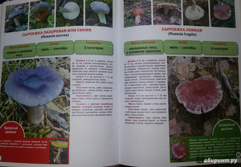 ОписаниеК сожалению, корзина опытных грибников редко чем отличается от корзины начинающих: стандартный набор из лисичек, пары-тройки разновидностей сыроежек и подосиновиков. Тем и довольствуются сотни тысяч любителей "тихой охоты". И напрасно. В справочнике-определителе, который вы держите в руках, дано описание 50 самых известных (а значит и надежных) и 50 малоизвестных (но не менее вкусных) грибов, распространенных на всей территории России. Благодаря ему вы сможете расширить свой "улов". Здесь же дана информация о категории съедобности каждого вида, сезоне роста, вариациях окраски и местах произрастания.К сожалению, корзина опытных грибников редко чем отличается от корзины начинающих: стандартный набор из лисичек, пары-тройки разновидностей сыроежек и подосиновиков. Тем и довольствуются сотни тысяч любителей "тихой охоты". И напрасно. В справочнике-определителе, который вы держите в руках, дано описание 50 самых известных (а значит и надежных) и 50 малоизвестных (но не менее вкусных) грибов, распространенных на всей территории России. Благодаря ему вы сможете расширить свой "улов". Здесь же дана информация о категории съедобности каждого вида, сезоне роста, вариациях окраски и местах произрастания.