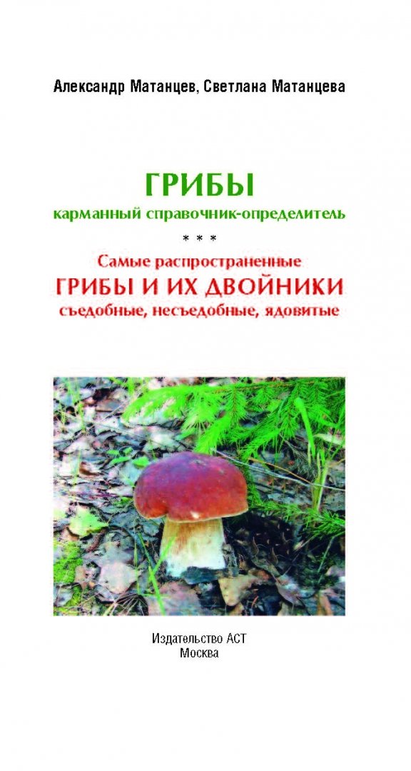 --Матанцев, Матанцева: Самые распространенные грибы и их двойники съедобные, несъедобные, ядовитыеХобби и развлечения. Организация досуга. ПесенникиИскусство. Культура. Музыка. Театр. КиноТуризм. Путешествие. Страноведение(Краеведение)Путеводители.Атласы дорог.КартыПутевые очерки. Рассказы путешественников и натуралистовОхота. Рыбалка. СобирательствоРастениеводствоКоллекционированиеТуризм. Путеводители. ТранспортРазвлечения. ПраздникиРемонт. Строительство. ИнтерьерДомашние ремесла. РукоделиеУход за животнымиФитнес. Спорт. СамооборонаКулинарияКультура. ИскусствоДомоводство