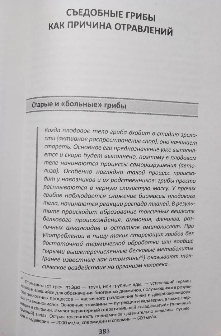 ОписаниеВпервые в одном иллюстрированном справочнике приведены и подробно рассмотрены все ядовитые грибы России (более 150 видов). Здесь вы найдете не только широко известные смертельно ядовитые грибы, вызывающие поражение почек, печени или нервной системы, или слабоядовитые, способные вызвать лишь желудочно-кишечные расстройства, но и менее известные (хотя и не менее опасные) аллергенные грибы, грибы, вызывающие разрушение клеток крови и мускулатуры, психотропные (галлюциногенные) и многие другие.В книге "Ядовитые грибы России" большое внимание уделено спорным темам: ядовиты ли жгучие млечники и горькие сыроежки; необходимо ли отваривание сморчков; могут ли вызвать отравление строчки, зеленушки, дубовики, зонтики и другие виды со сложной репутацией; что же все-таки делать со свинушкой; какие именно грибы опасны при употреблении с алкоголем; в чем заключается реальная угроза галлюциногенных грибов; по каким причинам съедобные грибы могут проявить ядовитые свойства; какие съедобные грибы ошибочно считаются ядовитыми — и целому ряду других.В книге подробно охарактеризованы токсичные вещества грибов, описано их действие на организм человека, приведены современные способы лечения грибных отравлений и рекомендации по избеганию сбора и употребления ядовитых грибов.Книга будет полезна не только российским грибникам, но и микологам и врачам-токсикологам, так как содержит самую современную информацию, не нашедшую пока отражения в российских изданиях.СвернутьВпервые в одном иллюстрированном справочнике приведены и подробно рассмотрены все ядовитые грибы России (более 150 видов). Здесь вы найдете не только широко известные смертельно ядовитые грибы, вызывающие поражение почек, печени или нервной системы, или слабоядовитые, способные вызвать лишь желудочно-кишечные расстройства, но и менее известные (хотя и не менее опасные) аллергенные грибы, грибы, вызывающие разрушение клеток крови и мускулатуры, психотропные (галлюциногенные) и многие другие.В книге "Ядовитые грибы России" большое внимание уделено спорным темам: ядовиты ли жгучие млечники и горькие сыроежки; необходимо ли отваривание сморчков; могут ли вызвать отравление строчки, зеленушки, дубовики, зонтики и другие виды со сложной репутацией; что же все-таки делать со свинушкой; какие именно грибы опасны при употреблении с алкоголем; в чем заключается реальная угроза галлюциногенных грибов; по каким причинам съедобные грибы могут проявить ядовитые свойства; какие съедобные грибы ошибочно считаются ядовитыми — и целому ряду других.В книге подробно охарактеризованы токсичные вещества грибов, описано их действие на организм человека, приведены современные способы лечения грибных отравлений и рекомендации по избеганию сбора и употребления ядовитых грибов.Книга будет полезна не только российским грибникам, но и микологам и врачам-токсикологам, так как содержит самую современную информацию, не нашедшую пока отражения в российских изданиях.СвернутьСвернуть