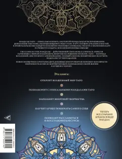 ОписаниеМандалы Таро - уникальная книга, в которой мандалы для раскрашивания дополнены текстами, раскрывающими смысл Таро, карт Старших Арканов и мастей. В этой раскраске вы найдете основную трактовку символов, узнаете о значениях карт и сможете создать свои неповторимые образы!Уже сами по себе мандалы - действенный способ расслабиться, обрести гармонию с миром и направить энергию на решение проблем. Таро - матрица Вселенной, инструмент самопознания, особый способ своевременно получить подсказку от мироздания. Новое необычное сочетание двух духовных инструментов поможет вам обрести уверенность в себе и скорректировать направление своей жизни в лучшую сторону.Эта книга:- откроет волшебный мир Таро;- познакомит с уникальными мандалами Таро;- наполнит энергией творчества;- научит лучше понимать самого себя;- позволит расслабиться и восстановить ресурсы.Мандалы Таро - уникальная книга, в которой мандалы для раскрашивания дополнены текстами, раскрывающими смысл Таро, карт Старших Арканов и мастей. В этой раскраске вы найдете основную трактовку символов, узнаете о значениях карт и сможете создать свои неповторимые образы!Уже сами по себе мандалы - действенный способ расслабиться, обрести гармонию с миром и направить энергию на решение проблем. Таро - матрица Вселенной, инструмент самопознания, особый способ своевременно получить подсказку от мироздания. Новое необычное сочетание двух духовных инструментов поможет вам обрести уверенность в себе и скорректировать направление своей жизни в лучшую сторону.Эта книга:- откроет волшебный мир Таро;- познакомит с уникальными мандалами Таро;- наполнит энергией творчества;- научит лучше понимать самого себя;- позволит расслабиться и восстановить ресурсы.