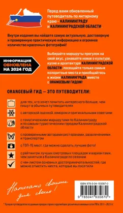 ОписаниеКалининград и его окрестности ежегодно входят в Топ самых популярных туристических направлений. Удивительная история бывшего прусского города, неповторимая архитектура, очарование Балтийского моря с мягким умеренным климатом, широкими песчаными пляжами и дюнами, вкуснейшие морепродукты и оригинальная кухня, великолепная рыбалка и даже серфинг — все это вы найдете на берегах Балтики. А наш путеводитель подскажет вам лучшие места для самостоятельного исследования области. В нем содержится актуальная и полезная информация о Калининграде и его окрестностях, различные маршруты на любой вкус, а также множество полезных советов от автора и местного гида Марины Железовой. Помимо пяти уникальных маршрутов по Калининграду вас ждут прогулки по самым ярким городам Калининградской области: Зеленоградску, Светлогорску, Балтийску, Янтарному, Черняховску, Советску, Правдинску и Железнодорожному. А также вас ждет целый маршрут по Куршской косе! Сориентироваться на местности помогут удобные карты, расположенные на страницах путеводителя. Вся информация актуальна на 2024 год.СвернутьКалининград и его окрестности ежегодно входят в Топ самых популярных туристических направлений. Удивительная история бывшего прусского города, неповторимая архитектура, очарование Балтийского моря с мягким умеренным климатом, широкими песчаными пляжами и дюнами, вкуснейшие морепродукты и оригинальная кухня, великолепная рыбалка и даже серфинг — все это вы найдете на берегах Балтики. А наш путеводитель подскажет вам лучшие места для самостоятельного исследования области. В нем содержится актуальная и полезная информация о Калининграде и его окрестностях, различные маршруты на любой вкус, а также множество полезных советов от автора и местного гида Марины Железовой. Помимо пяти уникальных маршрутов по Калининграду вас ждут прогулки по самым ярким городам Калининградской области: Зеленоградску, Светлогорску, Балтийску, Янтарному, Черняховску, Советску, Правдинску и Железнодорожному. А также вас ждет целый маршрут по Куршской косе! Сориентироваться на местности помогут удобные карты, расположенные на страницах путеводителя. Вся информация актуальна на 2024 год.СвернутьСвернуть