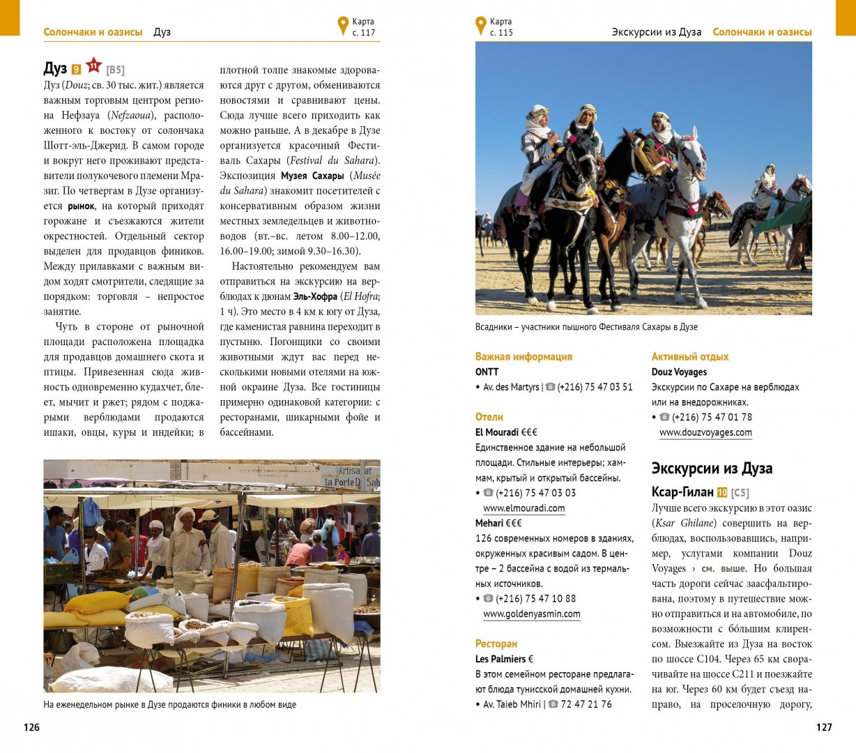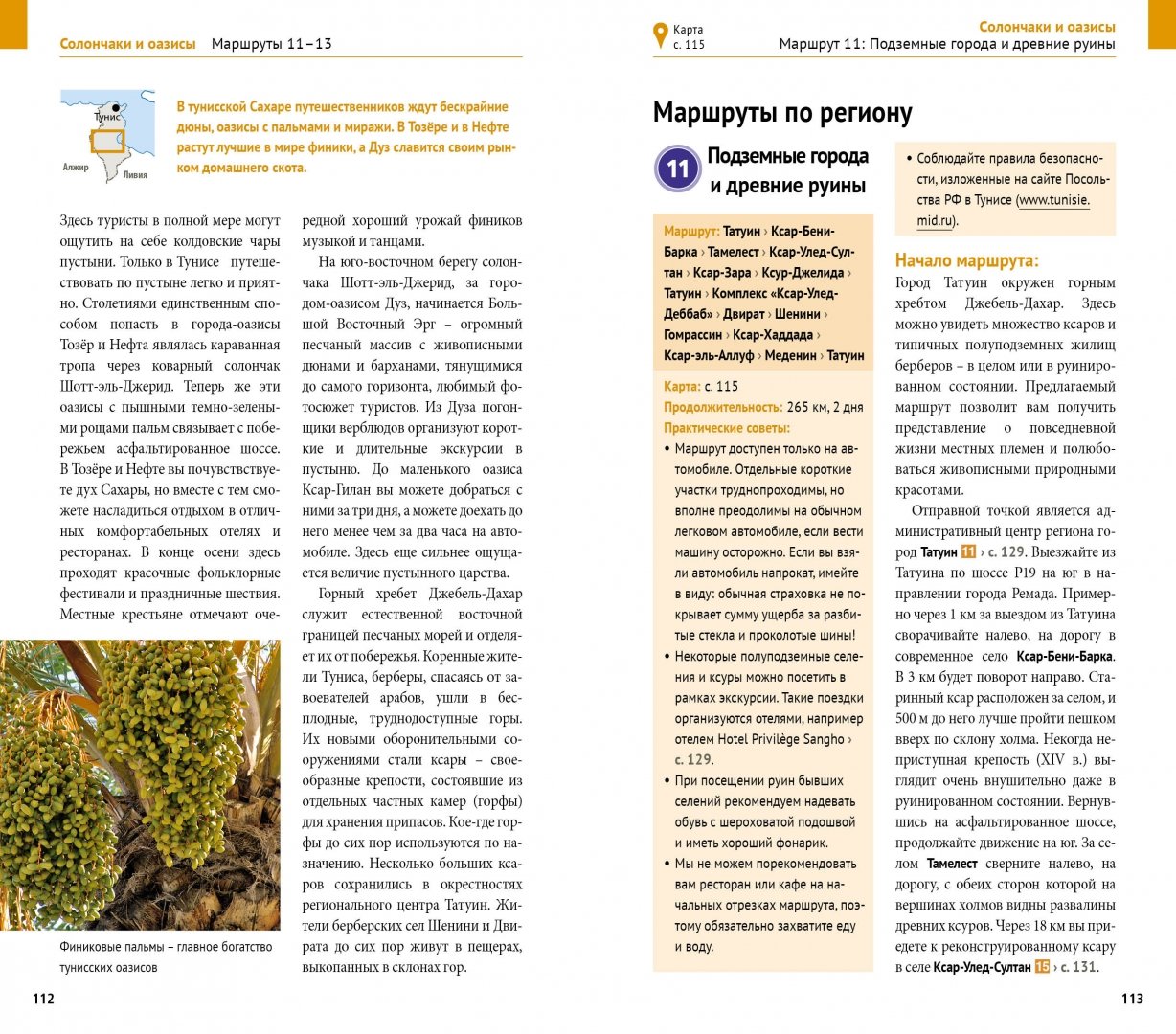 ОписаниеПутеводитель "Тунис" в серии "Русский гид. Полиглот" с мини-разговорником и большой подробной картой в накладном кармане на обложке. Разнообразны ландшафты страны: оливковые рощи Сахеля напоминают северные регионы Средиземноморья, а на юге страны расположены залитые палящим солнцем безбрежные пространства пустыни Сахары. Пожалуй, по достоинству оценить все очарование Туниса можно, посетив её столицу и окрестности: прогуляться по уютным извилистым торговым улочкам (суки, souk), заглянуть в древние мечети, полюбоваться зданиями постмодернистской архитектуры и шикарными современными торговыми центрами. Всегда много туристов на курортах Ла-Марса и Гаммарт, где отличные рестораны и бары расположены прямо на песчаных пляжах. А посещение городка Картаж, тихого аристократического пригорода столицы, позволит перенестись в далёкое прошлое и познакомиться с историей древних пунийцев и Древнего Рима. А ещё Тунис - это Коралловый берег и залив Хаммамет, древние города и остров Джерба, солончаки и оазисы.Чтобы было легче выбрать оптимальный маршрут предстоящего путешествия предлагаем воспользоваться путеводителем "Тунис" в серии "Полиглот. Русский гид".В путеводителе "Тунис" помимо удобных карт (18) и проверенных маршрутов (15) с описанием достопримечательностей размещена и практическая информация - полезные ссылки, адреса, расписание работы музеев и маршруты общественного транспорта, схемы проезда до популярных природных достопримечательностей и курортов.В путеводителе "Тунис" вы найдете разделы, которые помогут подготовиться к путешествию. Это краткая история государства, информация о транспортном сообщении (международном и внутреннем), календарь предстоящих событий и праздников. Раздел климат поможет выбрать лучшее время для путешествия, а информация о гостиницах и ресторанах - сориентироваться во всем многообразии предложений.А также уникальные маршруты по материковой части и островам.При наличии ограниченного времени предлагаем воспользоваться экстра-маршрутами, разработанными авторами, чтобы за 10 дней познакомиться с Тунисом или провести неделю в Сахаре!Маршруты по ТунисуГород Тунис и окрестности- В сердце медины- От сука обувщиков к площади АльфавинКоралловый берег и река Меджерда- 3 Римские виллы и водяные буйволы- 4 Руины древнеримских городовЗалив ХаммаметПо следам андалусцевПо полуострову Кап-БонОт Хаммамета к КайруануПоездка по СахелюОкрестности залива ХаммаметЗалив Габес и остров ДжербаПоездка по острову ДжербаПо горному краю МатматаОкрестности залива ГабесПодземные города и древние руиныСолончак Шотт-эль-ДжеридОазисы в горахЭкстра-маршруты- Античность, Восток и роскошные пляжи за 10 дней- Песчаный океан и миражи пустыни: одна неделя- В тунисской СахареСвернутьПутеводитель "Тунис" в серии "Русский гид. Полиглот" с мини-разговорником и большой подробной картой в накладном кармане на обложке. Разнообразны ландшафты страны: оливковые рощи Сахеля напоминают северные регионы Средиземноморья, а на юге страны расположены залитые палящим солнцем безбрежные пространства пустыни Сахары. Пожалуй, по достоинству оценить все очарование Туниса можно, посетив её столицу и окрестности: прогуляться по уютным извилистым торговым улочкам (суки, souk), заглянуть в древние мечети, полюбоваться зданиями постмод