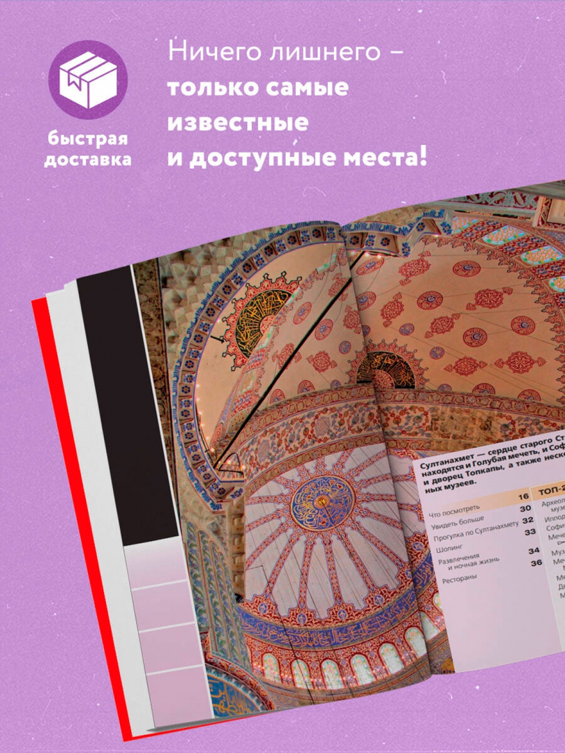 ОписаниеПеред вами гид по Стамбулу — одному из самых популярных направлений этого года. В нем содержится актуальная и полезная информация о городе, советы, как лучше провести первый и второй дни, куда сходить, а также Топ-25 главных достопримечательностей. В путеводителе вы найдете описания самых интересных мест в городе, а сориентироваться на местности помогут готовые маршруты и удобные карты районов Стамбула, расположенные на страницах гида. Вся необходимая информация о том, где остановиться и где попробовать национальную кухню, куда пойти и как провести время, всегда доступна с серией путеводителей «Красный гид», которые удобно брать с собой в поездку. Стамбул — удивительный город Турции на берегах пролива Босфор. На улочках города сохранилось большое количество зданий различных исторических эпох, множество тайн и секретов. Вся информация обновлена в 2024 году.Перед вами гид по Стамбулу — одному из самых популярных направлений этого года. В нем содержится актуальная и полезная информация о городе, советы, как лучше провести первый и второй дни, куда сходить, а также Топ-25 главных достопримечательностей. В путеводителе вы найдете описания самых интересных мест в городе, а сориентироваться на местности помогут готовые маршруты и удобные карты районов Стамбула, расположенные на страницах гида. Вся необходимая информация о том, где остановиться и где попробовать национальную кухню, куда пойти и как провести время, всегда доступна с серией путеводителей «Красный гид», которые удобно брать с собой в поездку. Стамбул — удивительный город Турции на берегах пролива Босфор. На улочках города сохранилось большое количество зданий различных исторических эпох, множество тайн и секретов. Вся информация обновлена в 2024 году.