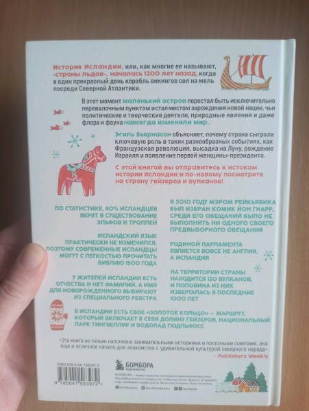 ОписаниеИстория Исландии или, как многие ее называют, "страны льдов", началась 1200 лет назад, когда в один прекрасный день корабль викингов сел на мель посреди Северной Атлантики. В этот момент маленький остров перестал быть исключительно перевалочным пунктом и стал местом зарождения нации, чьи политические и творческие деятели, природные явления, и даже флора и фауна, навсегда изменили мир. Автор книги Эгиль Бьярнасон объясняет, почему страна сыграла ключевую роль в таких разнообразных событиях, как Французская революция, высадка на Луну, рождение Израиля и появление первой женщины-президента.С этой книгой вы отправитесь к истокам истории Исландии и по-новому посмотрите на страну гейзеров и вулканов! "Эта книга не только наполнена занимательными историями и полезными советами, она еще и отличное начало для знакомства с удивительной культурой северного народа". - Publishers WeeklyИстория Исландии или, как многие ее называют, "страны льдов", началась 1200 лет назад, когда в один прекрасный день корабль викингов сел на мель посреди Северной Атлантики. В этот момент маленький остров перестал быть исключительно перевалочным пунктом и стал местом зарождения нации, чьи политические и творческие деятели, природные явления, и даже флора и фауна, навсегда изменили мир. Автор книги Эгиль Бьярнасон объясняет, почему страна сыграла ключевую роль в таких разнообразных событиях, как Французская революция, высадка на Луну, рождение Израиля и появление первой женщины-президента.С этой книгой вы отправитесь к истокам истории Исландии и по-новому посмотрите на страну гейзеров и вулканов! "Эта книга не только наполнена занимательными историями и полезными советами, она еще и отличное начало для знакомства с удивительной культурой северного народа". - Publishers Weekly