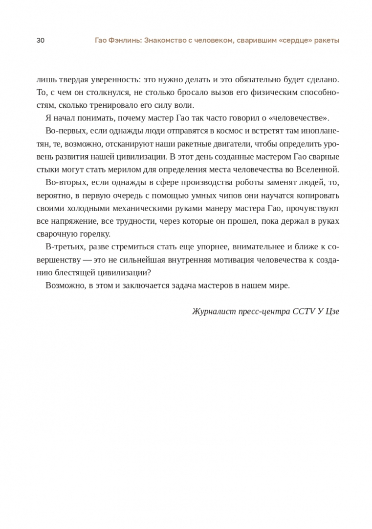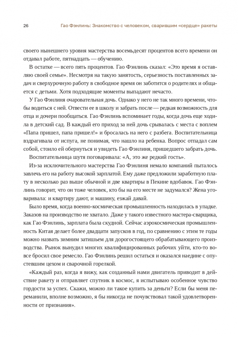 ОписаниеНеобычные профессии всегда вызывают интерес, однако познакомиться с их представителями поближе и узнать подробности бывает довольно непросто. Эта книга расскажет о жителях Поднебесной, посвятивших свою жизнь самым разным специальностям и добившимся выдающихся результатов. Передовые рабочие и техники, деятели прикладного искусства, хирург-новатор - очень важно, чтобы о них знали и в Китае, и в мире, а их дело не было забыто."Мастера великой державы" - цикл телепередач производства пресс-центра CCTV, которая непрерывно транслировалась по "Синьвэнь Ляньбо" ("Блок новостей") и новостным каналам на протяжении семи сезонов (2015-2019). На основе самых интересных сюжетов телевизионного цикла и была написана эта книга. Книга адресована всем интересующимся повседневной жизнью Китая, состоянием его экономики, науки и культуры и особенностями телевещания.Необычные профессии всегда вызывают интерес, однако познакомиться с их представителями поближе и узнать подробности бывает довольно непросто. Эта книга расскажет о жителях Поднебесной, посвятивших свою жизнь самым разным специальностям и добившимся выдающихся результатов. Передовые рабочие и техники, деятели прикладного искусства, хирург-новатор - очень важно, чтобы о них знали и в Китае, и в мире, а их дело не было забыто."Мастера великой державы" - цикл телепередач производства пресс-центра CCTV, которая непрерывно транслировалась по "Синьвэнь Ляньбо" ("Блок новостей") и новостным каналам на протяжении семи сезонов (2015-2019). На основе самых интересных сюжетов телевизионного цикла и была написана эта книга. Книга адресована всем интересующимся повседневной жизнью Китая, состоянием его экономики, науки и культуры и особенностями телевещания.