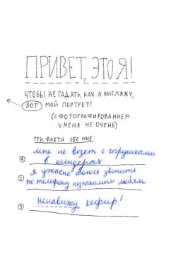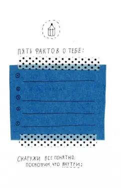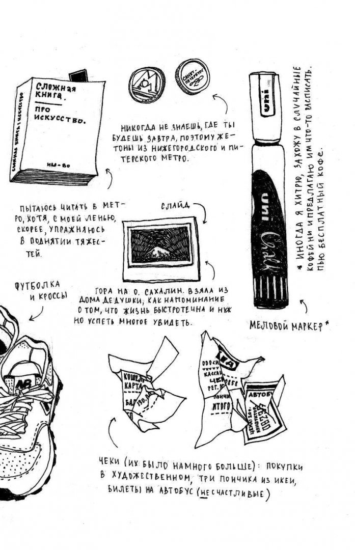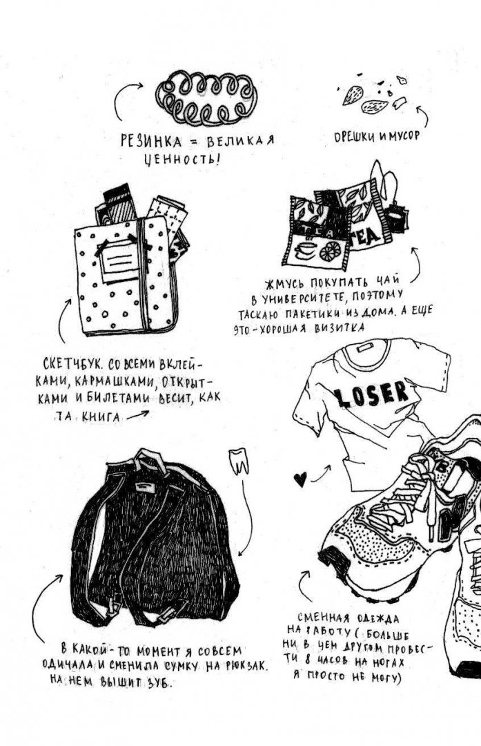 ОписаниеАвтор книги молодой и талантливый иллюстратор, Катя Гущина. О ней узнал весь интернет после 7 тысяч репостов ее потрясающей работы "Москва-Владивосток". Теперь Катя создала книгу, в которой поместились ее важные и яркие события за год: студенческая жизнь, первая работа, экспедиция в Иран, путешествие в Болонью и много мыслей вслух. Катя рассказывает о себе на языке иллюстраций и предлагает тебе вспомнить и выразить что-то значимое при помощи рисунков и записей. По ходу ее захватывающих рассказов о сумасшедших событиях за год, ты будешь выполнять неожиданные задания: тебе придётся вывернуть свои карманы (там много интересного); изобразить себя таким, каким мечтал стать в детстве; выяснить с какими вещами ты всегда ощущаешь себя, как дома и найти другие ответы на вопросы, которые никогда бы не пришли в голову без этой книги.Автор книги молодой и талантливый иллюстратор, Катя Гущина. О ней узнал весь интернет после 7 тысяч репостов ее потрясающей работы "Москва-Владивосток". Теперь Катя создала книгу, в которой поместились ее важные и яркие события за год: студенческая жизнь, первая работа, экспедиция в Иран, путешествие в Болонью и много мыслей вслух. Катя рассказывает о себе на языке иллюстраций и предлагает тебе вспомнить и выразить что-то значимое при помощи рисунков и записей. По ходу ее захватывающих рассказов о сумасшедших событиях за год, ты будешь выполнять неожиданные задания: тебе придётся вывернуть свои карманы (там много интересного); изобразить себя таким, каким мечтал стать в детстве; выяснить с какими вещами ты всегда ощущаешь себя, как дома и найти другие ответы на вопросы, которые никогда бы не пришли в голову без этой книги.