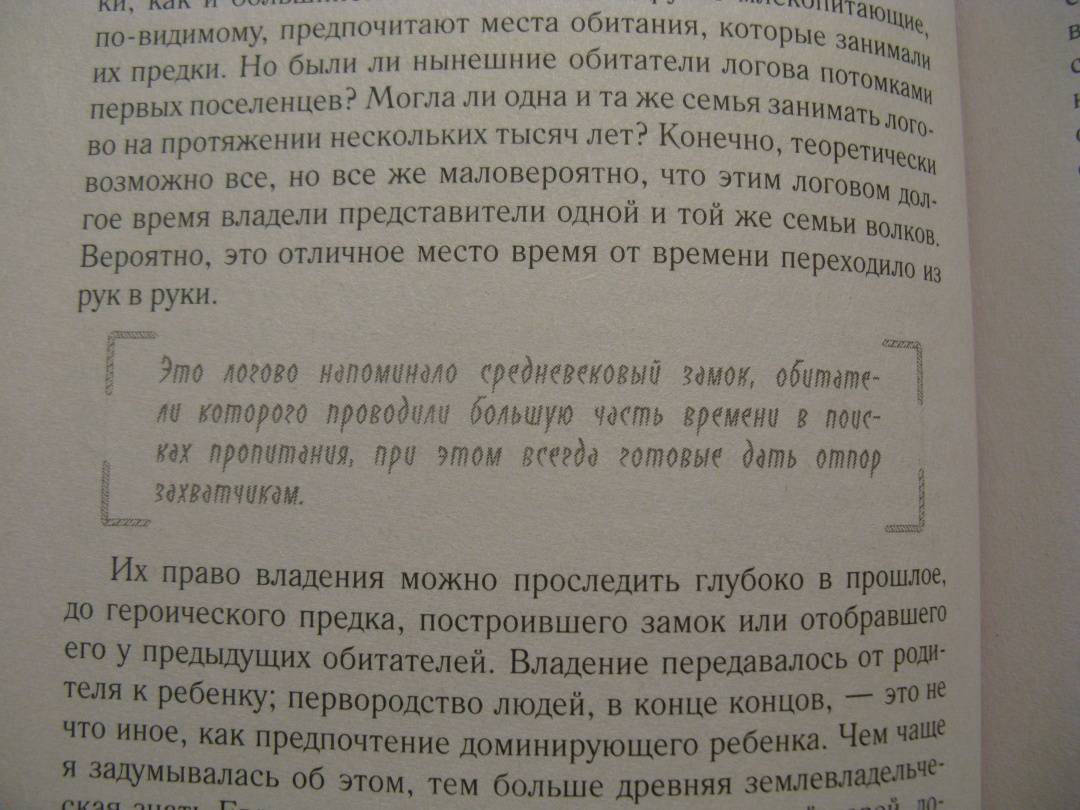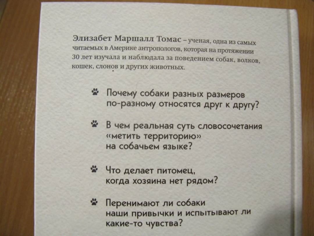ОписаниеПочему собаки разных размеров по-разному относятся друг к другу? В чем реальная суть словосочетания «метить территорию» на собачьем языке? Что делает питомец, когда хозяина нет рядом? На эти и многие другие вопросы Элизабет Маршалл отвечает и как ученый, и как собаковод. Автор опирается на 30-летний опыт жизни с домашними собаками, динго и волками и наблюдений за ними. Это не очередное руководство по уходу за питомцами. Эта книга для тех, кто хочет услышать новое мнение и узнать тайны собачьего сознания. Это трогательные истории о том, что случается с домашними собаками, если позволить им жить свободно, и в ком они нуждаются больше: друг в друге или в людях. Первый тираж «Секретной жизни собак» в 1993 году за рубежом составил 13 000 экземпляров, а всего напечатано более миллиона. В списке бестселлеров New York Times книга пробыла почти 10 месяцев. Она получила восторженные отзывы, и очарованные читатели призывали других поскорее купить ее. Элизабет Маршалл Томас — американская писательница. Она публиковала художественные и научно-популярные книги и статьи о поведении животных, и ее работы перенесли миллионы людей в тайную жизнь питомцев.СвернутьПочему собаки разных размеров по-разному относятся друг к другу? В чем реальная суть словосочетания «метить территорию» на собачьем языке? Что делает питомец, когда хозяина нет рядом? На эти и многие другие вопросы Элизабет Маршалл отвечает и как ученый, и как собаковод. Автор опирается на 30-летний опыт жизни с домашними собаками, динго и волками и наблюдений за ними. Это не очередное руководство по уходу за питомцами. Эта книга для тех, кто хочет услышать новое мнение и узнать тайны собачьего сознания. Это трогательные истории о том, что случается с домашними собаками, если позволить им жить свободно, и в ком они нуждаются больше: друг в друге или в людях. Первый тираж «Секретной жизни собак» в 1993 году за рубежом составил 13 000 экземпляров, а всего напечатано более миллиона. В списке бестселлеров New York Times книга пробыла почти 10 месяцев. Она получила восторженные отзывы, и очарованные читатели призывали других поскорее купить ее. Элизабет Маршалл Томас — американская писательница. Она публиковала художественные и научно-популярные книги и статьи о поведении животных, и ее работы перенесли миллионы людей в тайную жизнь питомцев.СвернутьСвернуть