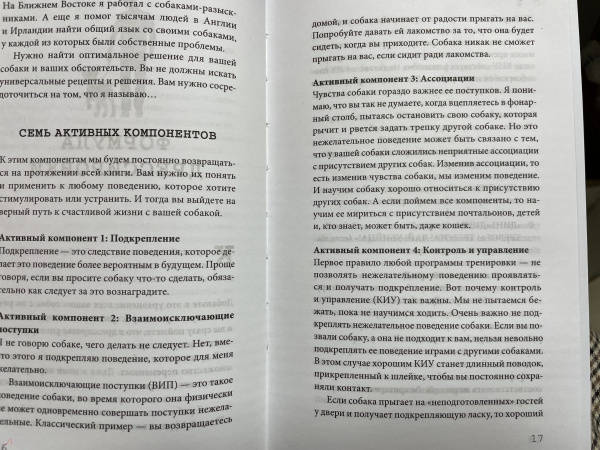 ОписаниеЕсли вы очень любите свою собаку, но она доставляет вам массу проблем. Если за каждое ее поведение приходится постоянно извиняться. Если вы переживаете каждый раз, когда силой приходится принуждать собаку. Эта книга для вас! За свою 30-летнюю карьеру дрессировщик собак Стив Манн получил немало писем с просьбами владельцев помочь решить проблемы в поведении своих питомцев. В этой книге он делится практичными советами. В пошаговом руководстве вы найдете решения как самых сложных проблем в поведении собак, так и методы комфортной дрессировки. Ведь ключом к эффективному воспитанию является, прежде всего, понимание того, почему собаки делают то, что делают. Автор рассматривает самые разные проблемы:- Собака тянет поводок.- Не хочет принимать лекарства.- Убегает на улице.- Не откликается на кличку.- Подбирает все подряд.- Прыгает на людей.- Лает без повода на других собак.- Боится оставаться одна. Здесь найдется решение для всех собак - независимо от породы, размера и возраста. Раздел с трюками доставит радость не только собаке, но и детям, которые смогут обучить своего четвероногого друга некоторым простым приемам: вращение, поклон, змейка и пикабу!СвернутьЕсли вы очень любите свою собаку, но она доставляет вам массу проблем. Если за каждое ее поведение приходится постоянно извиняться. Если вы переживаете каждый раз, когда силой приходится принуждать собаку. Эта книга для вас! За свою 30-летнюю карьеру дрессировщик собак Стив Манн получил немало писем с просьбами владельцев помочь решить проблемы в поведении своих питомцев. В этой книге он делится практичными советами. В пошаговом руководстве вы найдете решения как самых сложных проблем в поведении собак, так и методы комфортной дрессировки. Ведь ключом к эффективному воспитанию является, прежде всего, понимание того, почему собаки делают то, что делают. Автор рассматривает самые разные проблемы:- Собака тянет поводок.- Не хочет принимать лекарства.- Убегает на улице.- Не откликается на кличку.- Подбирает все подряд.- Прыгает на людей.- Лает без повода на других собак.- Боится оставаться одна. Здесь найдется решение для всех собак - независимо от породы, размера и возраста. Раздел с трюками доставит радость не только собаке, но и детям, которые смогут обучить своего четвероногого друга некоторым простым приемам: вращение, поклон, змейка и пикабу!СвернутьСвернуть