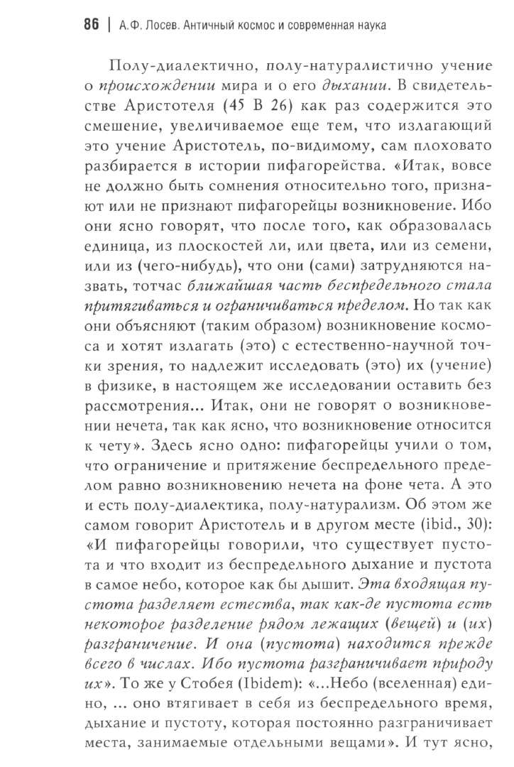 ОписаниеИздание книги гениального русского философа Алексея Федоровича Лосева (1893-1988) "Античный космос и современная наука" приурочено к 130-летию рождения и к 35-летию его кончины. В этом труде выдающимся ученым ставится задача показать, "как античный космос обоснован диалектически", т. е. какие диалектические категории использовали греческие мыслители, чтобы "осуществить конструкцию созерцаемой ими вселенной". Главные понятия, лежащие в основе всего исследования А.Ф. Лосева, - это имя, число и вещь. Имя в античной традиции, согласно Лосеву, - это "лик", выразительная форма самой вещи. Число - это конструктивная основа всякой вещи. Сама вещь есть самостоятельно существующая сущность, являющаяся предметом человеческого познания благодаря числу и имени, которые представляют собой объективные способы последовательного процесса осмысления предметов. Наряду с этим Лосев прослеживает прямую связь понятий, присущих античности, с достижениями науки, существовавшими ко времени написания его труда.Книга адресована историкам отечественной мысли, философам, культурологам, а также кругу эрудированных читателей, стремящихся к постижению целостной картины мира.СвернутьИздание книги гениального русского философа Алексея Федоровича Лосева (1893-1988) "Античный космос и современная наука" приурочено к 130-летию рождения и к 35-летию его кончины. В этом труде выдающимся ученым ставится задача показать, "как античный космос обоснован диалектически", т. е. какие диалектические категории использовали греческие мыслители, чтобы "осуществить конструкцию созерцаемой ими вселенной". Главные понятия, лежащие в основе всего исследования А.Ф. Лосева, - это имя, число и вещь. Имя в античной традиции, согласно Лосеву, - это "лик", выразительная форма самой вещи. Число - это конструктивная основа всякой вещи. Сама вещь есть самостоятельно существующая сущность, являющаяся предметом человеческого познания благодаря числу и имени, которые представляют собой объективные способы последовательного процесса осмысления предметов. Наряду с этим Лосев прослеживает прямую связь понятий, присущих античности, с достижениями науки, существовавшими ко времени написания его труда.Книга адресована историкам отечественной мысли, философам, культурологам, а также кругу эрудированных читателей, стремящихся к постижению целостной картины мира.СвернутьСвернуть