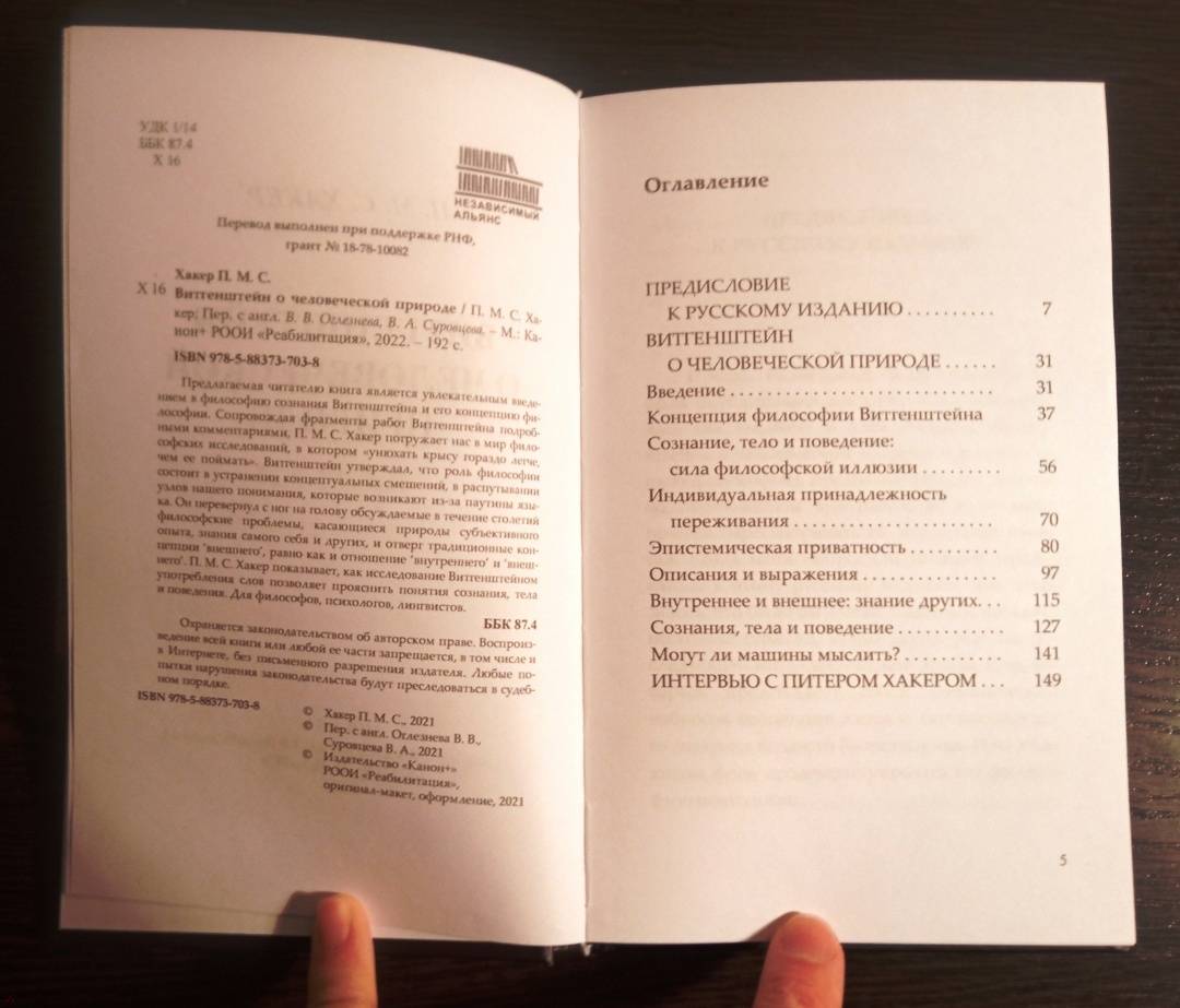 ОписаниеПредлагаемая читателю книга «Витгенштейн о человеческой природе» является увлекательным введением в философию сознания Витгенштейна и его концепцию философии. Сопровождая фрагменты работ Витгенштейна подробными комментариями, П. М. С. Хакер погружает нас в мир философских исследований, в котором “унюхать крысу гораздо легче, чем ее поймать”. Витгенштейн утверждал, что роль философии состоит в устранении концептуальных смешений, в распутывании узлов нашего понимания, которые возникают из-за паутины языка. Он перевернул с ног на голову обсуждаемые в течении столетий философские проблемы, касающиеся природы субъективного опыта, знания самого себя и других и отверг традиционные концепции ‘внешнего’, равно как и отношение ‘внутреннего’ и ‘внешнего’. П. М. С. Хакер показывает, как исследование Витгенштейном употребления слов позволяет прояснить понятия сознания, тела и поведения. Для философов, психологов, лингвистов.Питер Майкл Стефан Хакер (Peter Michael Stephan Hacker) – британский философ,родился в Лондоне 15 июля 1939 года. С 1960 по 1963 обучался в Куинз-Колледже (Queen’s College) Оксфордского университета по программе “Философия, политика и экономика”. После окончания университета в 1963 получил трехлетнюю стипендию от Колледжа Святого Антония (St Antony’s College) для написания докторской диссертации под руководством профессора юриспруденции Оксфордского университета Г. Л. А. Харта. В 1965 был избран младшим научным сотрудником Баллиол-Колледжа (Balliol College), а в 1966, после получения степени доктора философии, – преподавателем философии и членом Колледжа Святого Иоанна (St John’s College). В Колледже Святого Иоанна он проработал пятьдесят лет вплоть до своей отставки. В 2010 был избран почетным членом Куинз-Колледжа. В разные годы был приглашенным профессором многих американских и европейских университетов. С 2019 по настоящее время является почетным профессором института нейрологии Университетского колледжа Лондона.П. М. С. Хакер является ведущим современным специалистом по философии Витгенштейна, о котором он написал более десятка книг, в том числе четыре тома комментариев к “Философским исследованиям” (два в соавторстве с Г. П. Бейкером). Также он является автором нескольких книг по когнитивной нейронауке (в соавторстве с М. Р. Беннетом) и четырехтомника по философской антропологии.СвернутьПредлагаемая читателю книга «Витгенштейн о человеческой природе» является увлекательным введением в философию сознания Витгенштейна и его концепцию философии. Сопровождая фрагменты работ Витгенштейна подробными комментариями, П. М. С. Хакер погружает нас в мир философских исследований, в котором “унюхать крысу гораздо легче, чем ее поймать”. Витгенштейн утверждал, что роль философии состоит в устранении концептуальных смешений, в распутывании узлов нашего понимания, которые возникают из-за паутины языка. Он перевернул с ног на голову обсуждаемые в течении столетий философские проблемы, касающиеся природы субъективного опыта, знания самого себя и других и отверг традиционные концепции ‘внешнего’, равно как и отношение ‘внутреннего’ и ‘внешнего’. П. М. С. Хакер показывает, как исследование Витгенштейном употребления слов позволяет прояснить понятия сознания, тела и поведения. Для философов, психологов, лингвистов.Питер Майкл Стефан Хакер (Peter Micha
