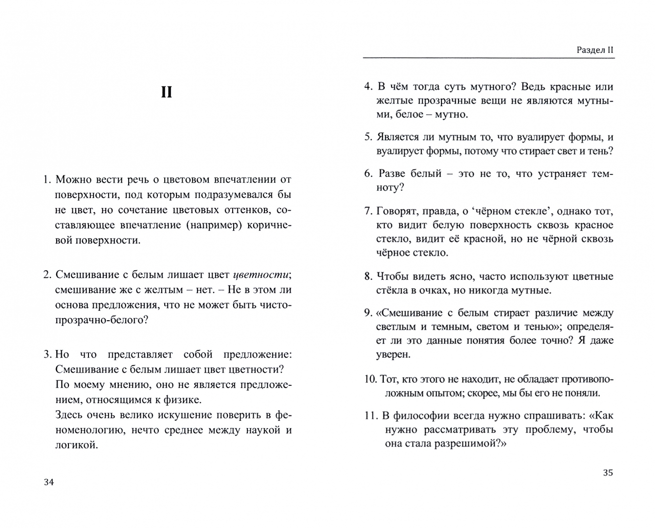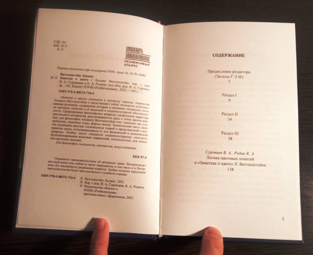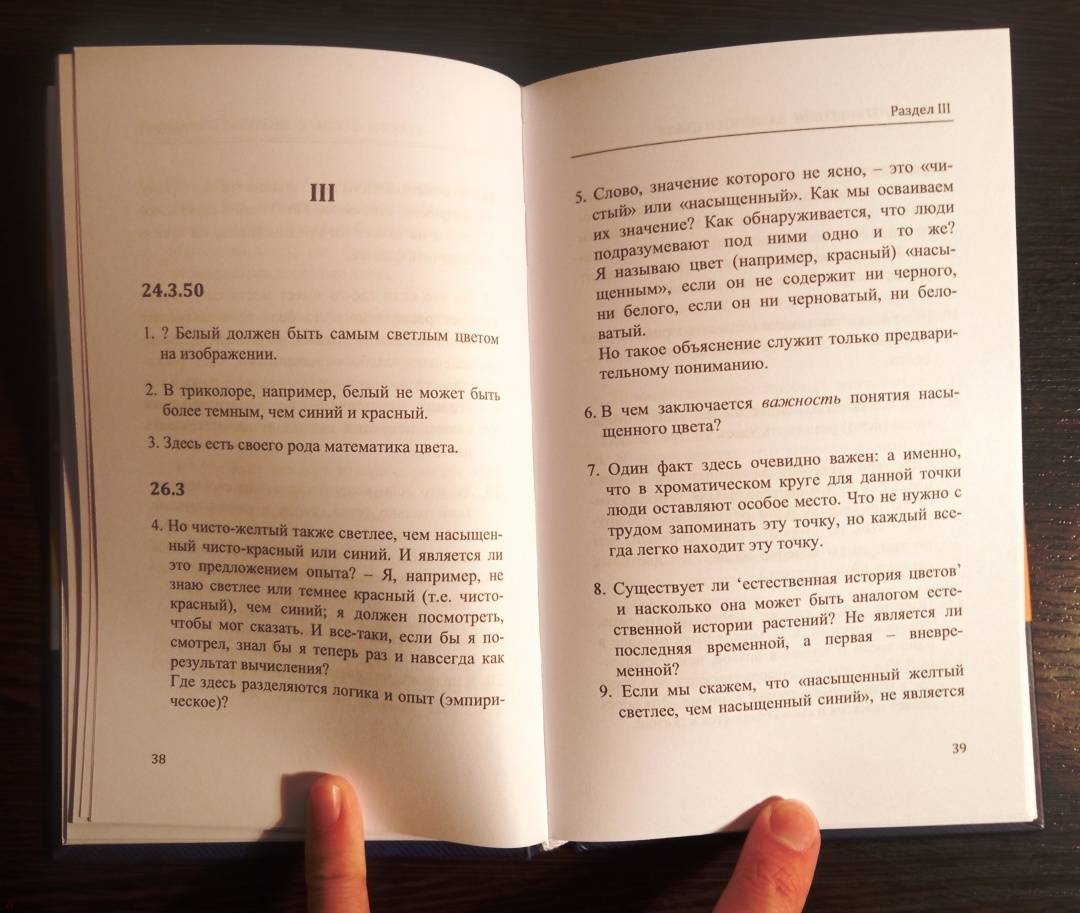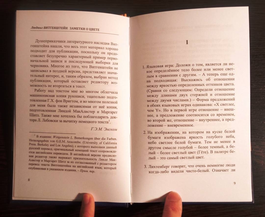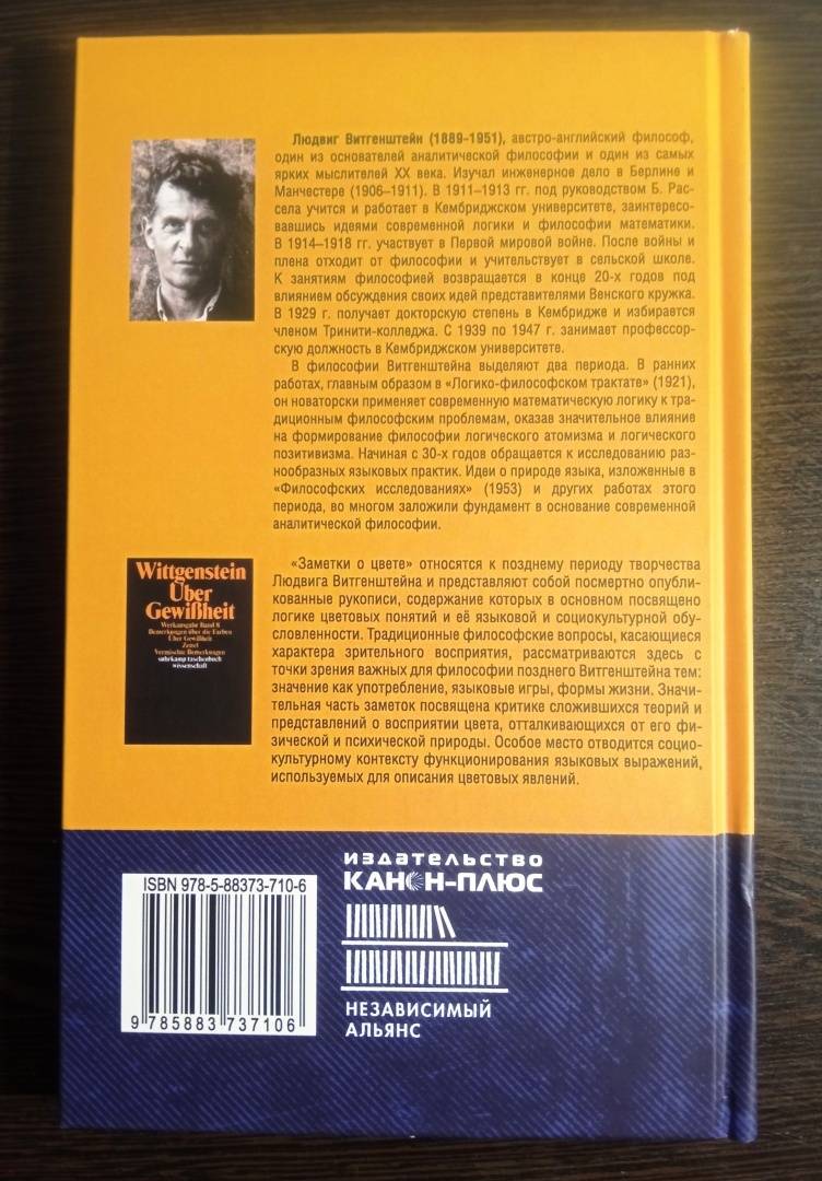 ОписаниеЛюдвиг Витгенштейн (1889-1951), австро-английский философ, один из основателей аналитической философии и один из самых ярких мыслителей XX века. Изучал инженерное дело в Берлине и Манчестере (1906-1911). В 1911-1913 гг. под руководством Б. Рассела учится и работает в Кембриджском университете, заинтересовавшись идеями современной логики и философии математики. В 1914-1918 гг. участвует в Первой мировой войне. После войны и плена отходит от философии и учительствует в сельской школе. К занятиям философией возвращается в конце 20-х годов под влиянием обсуждения своих идей представителями Венского кружка. В 1929 г. получает докторскую степень в Кембридже и избирается членом Тринити-колледжа. С 1939 по 1947 гг. занимает профессорскую должность в Кембриджском университете.В философии Витгенштейна выделяют два периода. В ранних работах, главным образом в "Логико-философском трактате" (1921) он новаторски применяет современную математическую логику к традиционным философским проблемам, оказав значительное влияние на формирование философии логического атомизма и логического позитивизма. Начиная с 30-х годов обращается к исследованию разнообразных языковых практик. Идеи о природе языка, изложенные в "Философских исследованиях" (1953) и других работах этого периода, во многом заложили фундамент в основание современной аналитической философии."Заметки о цвете" относятся к позднему периоду творчества Людвига Витгенштейна и представляют собой посмертно опубликованные рукописи, содержание которых в основном посвящено логике цветовых понятий и её языковой и социокультурной обусловленности. Традиционные философские вопросы, касающиеся характера зрительного восприятия, рассматриваются здесь с точки зрения важных для философии позднего Витгенштейна тем: значение как употребление, языковые игры, формы жизни. Значительная часть заметок посвящена критике сложившихся теорий и представлений о восприятии цвета, отталкивающихся от его физической и психической природы. Особое место отводится социокультурному контексту функционирования языковых выражений, используемых для описания цветовых явлений.Для философов, психологов, лингвистов, искусствоведов.СвернутьЛюдвиг Витгенштейн (1889-1951), австро-английский философ, один из основателей аналитической философии и один из самых ярких мыслителей XX века. Изучал инженерное дело в Берлине и Манчестере (1906-1911). В 1911-1913 гг. под руководством Б. Рассела учится и работает в Кембриджском университете, заинтересовавшись идеями современной логики и философии математики. В 1914-1918 гг. участвует в Первой мировой войне. После войны и плена отходит от философии и учительствует в сельской школе. К занятиям философией возвращается в конце 20-х годов под влиянием обсуждения своих идей представителями Венского кружка. В 1929 г. получает докторскую степень в Кембридже и избирается членом Тринити-колледжа. С 1939 по 1947 гг. занимает профессорскую должность в Кембриджском университете.В философии Витгенштейна выделяют два периода. В ранних работах, главным образом в "Логико-философском трактате" (1921) он новаторски применяет современную математическую логику к традиционным философским проблемам, оказав значительное влияние на формирование философии логического атомизма и логического позитивизма. Начиная с 30-х годов обращается к ис