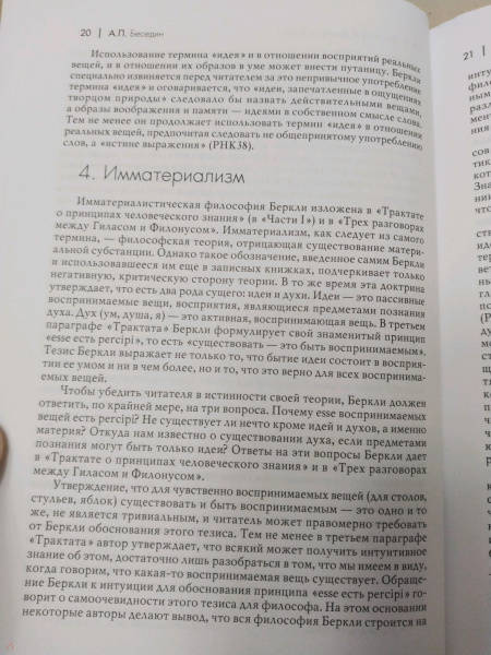 ОписаниеВ настоящий том вошли важнейшие философские сочинения ирландского философа Джорджа Беркли (1685-1753), прославившегося доктриной имматериализма: "Опыт новой теории зрения", "Трактат о принципах человеческого знания", "Три разговора между Гиласом и Филонусом", "О движении" и "Алкифрон, или Мелкий философ". Первые три работы были заново сверены с английским текстом и снабжены новыми комментариями. Сочинениям Беркли предпослана развернутая вводная статья, знакомящая читателя с основными темами его философии.Данное издание будет интересно и тем, кто впервые знакомится с философией Беркли, и тем, кто хотел бы изучить ее более детально.В настоящий том вошли важнейшие философские сочинения ирландского философа Джорджа Беркли (1685-1753), прославившегося доктриной имматериализма: "Опыт новой теории зрения", "Трактат о принципах человеческого знания", "Три разговора между Гиласом и Филонусом", "О движении" и "Алкифрон, или Мелкий философ". Первые три работы были заново сверены с английским текстом и снабжены новыми комментариями. Сочинениям Беркли предпослана развернутая вводная статья, знакомящая читателя с основными темами его философии.Данное издание будет интересно и тем, кто впервые знакомится с философией Беркли, и тем, кто хотел бы изучить ее более детально.