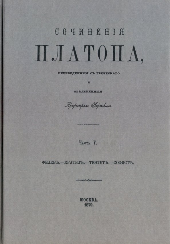 ОписаниеНастоящее издание является репринтным воспроизведением второго издания Сочинений Платона в переводе В.Н.Карпова, вышедшего в свет в 1863-1879 годах. Пятый и шестой тома Собрания сочинений посвящены важнейшим онтологическим и гносеологическим произведениям Платона. Здесь представлено полное развитие учения Платона, изложенное им в диалогах зрелого и позднего периода творчества. Из более ранних произведений здесь представлен только диалог "Кратил", являющийся, однако, произведением уже чрезвычайно трудным и насыщенным. Пятый том Собрания открывается диалогами "Филеб" и "Кратил". После них следует последовательность четырех связанных диалогов Платона: "Теэтет", "Софист", "Политик" и "Парменид". Первые два из них размещены в пятом томе, следующие два - в шестом. Далее в шестом томе следуют диалоги "Тимей" и "Критий". Диалоги "Минос" и "Эриксиас", расположенные в самом конце шестого тома, принадлежат не самому Платону, а платоновской школе и исторически входят в корпус его сочинений.Настоящее издание является репринтным воспроизведением второго издания Сочинений Платона в переводе В.Н.Карпова, вышедшего в свет в 1863-1879 годах. Пятый и шестой тома Собрания сочинений посвящены важнейшим онтологическим и гносеологическим произведениям Платона. Здесь представлено полное развитие учения Платона, изложенное им в диалогах зрелого и позднего периода творчества. Из более ранних произведений здесь представлен только диалог "Кратил", являющийся, однако, произведением уже чрезвычайно трудным и насыщенным. Пятый том Собрания открывается диалогами "Филеб" и "Кратил". После них следует последовательность четырех связанных диалогов Платона: "Теэтет", "Софист", "Политик" и "Парменид". Первые два из них размещены в пятом томе, следующие два - в шестом. Далее в шестом томе следуют диалоги "Тимей" и "Критий". Диалоги "Минос" и "Эриксиас", расположенные в самом конце шестого тома, принадлежат не самому Платону, а платоновской школе и исторически входят в корпус его сочинений.