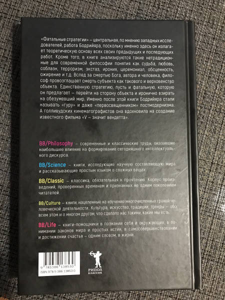 Описание"Фатальные стратегии" - центральная, по мнению западных исследователей, работа Бодрийяра, поскольку именно здесь он излагает теоретическую основу всех своих предыдущих и последующих работ. Кроме того, в книге анализируются такие нетрадиционные для современной философии понятия как судьба, любовь, соблазн, терроризм, экстаз, ирония, церемониал, обсценность, ожирение и т.д. Вслед за смертью Бога, автора и человека, философ провозглашает смерть субъекта как такового и верховенство объекта. Единственную стратегию, пусть и фатальную, которую он предлагает - перейти на сторону объекта и иронично взирать на обезумевший мир. Именно после этой книги Бодрийяра стали называть "гуру" и даже "первосвященником" постмодернизма. А голливудских кинематографистов она вдохновила на создание известного фильма "V - значит вендетта"."Фатальные стратегии" - центральная, по мнению западных исследователей, работа Бодрийяра, поскольку именно здесь он излагает теоретическую основу всех своих предыдущих и последующих работ. Кроме того, в книге анализируются такие нетрадиционные для современной философии понятия как судьба, любовь, соблазн, терроризм, экстаз, ирония, церемониал, обсценность, ожирение и т.д. Вслед за смертью Бога, автора и человека, философ провозглашает смерть субъекта как такового и верховенство объекта. Единственную стратегию, пусть и фатальную, которую он предлагает - перейти на сторону объекта и иронично взирать на обезумевший мир. Именно после этой книги Бодрийяра стали называть "гуру" и даже "первосвященником" постмодернизма. А голливудских кинематографистов она вдохновила на создание известного фильма "V - значит вендетта".
