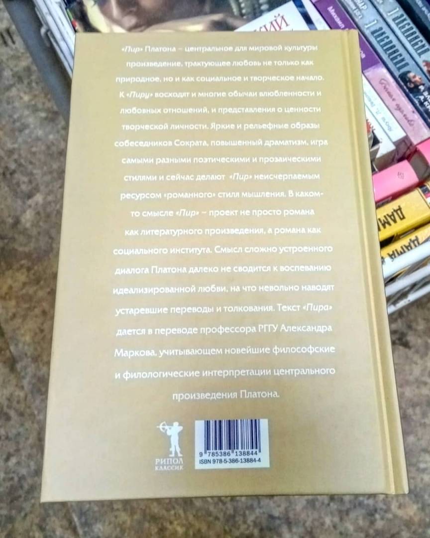 Описание"Пир" Платона – центральное для мировой культуры произведение, трактующее любовь не только как природное, но и как социальное и творческое начало. К "Пиру" восходят и многие обычаи влюбленности и любовных отношений, и представления о ценности творческой личности. Яркие и рельефные образы собеседников Сократа, повышенный драматизм, игра самыми разными поэтическими и прозаическими стилями и сейчас делают "Пир" неисчерпаемым ресурсом "романного" стиля мышления. В каком-то смысле "Пир" – проект не просто романа как литературного произведения, а романа как социального института. Смысл сложно устроенного диалога Платона далеко не сводится к воспеванию идеализированной любви, на что невольно наводят устаревшие переводы и толкования. Текст "Пира" дается в переводе профессора РГГУ Александра Маркова, учитывающем новейшие философские и филологические интерпретации центрального произведения Платона."Пир" Платона – центральное для мировой культуры произведение, трактующее любовь не только как природное, но и как социальное и творческое начало. К "Пиру" восходят и многие обычаи влюбленности и любовных отношений, и представления о ценности творческой личности. Яркие и рельефные образы собеседников Сократа, повышенный драматизм, игра самыми разными поэтическими и прозаическими стилями и сейчас делают "Пир" неисчерпаемым ресурсом "романного" стиля мышления. В каком-то смысле "Пир" – проект не просто романа как литературного произведения, а романа как социального института. Смысл сложно устроенного диалога Платона далеко не сводится к воспеванию идеализированной любви, на что невольно наводят устаревшие переводы и толкования. Текст "Пира" дается в переводе профессора РГГУ Александра Маркова, учитывающем новейшие философские и филологические интерпретации центрального произведения Платона.