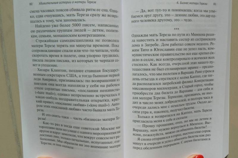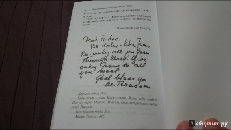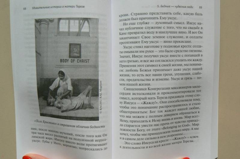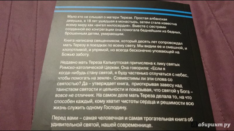 ОписаниеВ этой книге собраны 50 историй о матери Терезе. И написаны они человеком, который на протяжении многих лет сопровождал ее и сестер конгрегации Миссионерок Милосердия в их многочисленных поездках. После выхода писем и дневников матери Терезы ("Будь моим светом") о ее личности и вере разразились новые споры. Мир узнал о том, с какой отчаянной жаждой она стремилась к близости с Богом, какого накала достигала ее духовная борьба. Книга о. Лео Масбурга удивительно точно, прекрасным языком и с неподражаемым юмором рассказывает о том, какой мать Терезу видели люди, какое впечатление производила на них эта цельная, целеустремленная натура и на что шли силы, обретавшиеся ею в молитве и евхаристии. Самое удивительное, что в матери Терезе не было ничего... сверхъестественного. Весь мир узнал о ней не потому что она была гением. Но она стала известна всему миру, потому что ничем не отличаясь от нас, совершала невозможное благодаря своей вере и преданности Богу. В принципе каждый способен сделать то, что делала мать Тереза, всегда видевшая Христа в обездоленных и всю жизнь служившая Ему, воплощенному в беднейших из бедных. За одним исключением: только единицы согласятся каждое мгновение своей жизни отдать Богу, ничего не оставив себе.3-е издание.СвернутьВ этой книге собраны 50 историй о матери Терезе. И написаны они человеком, который на протяжении многих лет сопровождал ее и сестер конгрегации Миссионерок Милосердия в их многочисленных поездках. После выхода писем и дневников матери Терезы ("Будь моим светом") о ее личности и вере разразились новые споры. Мир узнал о том, с какой отчаянной жаждой она стремилась к близости с Богом, какого накала достигала ее духовная борьба. Книга о. Лео Масбурга удивительно точно, прекрасным языком и с неподражаемым юмором рассказывает о том, какой мать Терезу видели люди, какое впечатление производила на них эта цельная, целеустремленная натура и на что шли силы, обретавшиеся ею в молитве и евхаристии. Самое удивительное, что в матери Терезе не было ничего... сверхъестественного. Весь мир узнал о ней не потому что она была гением. Но она стала известна всему миру, потому что ничем не отличаясь от нас, совершала невозможное благодаря своей вере и преданности Богу. В принципе каждый способен сделать то, что делала мать Тереза, всегда видевшая Христа в обездоленных и всю жизнь служившая Ему, воплощенному в беднейших из бедных. За одним исключением: только единицы согласятся каждое мгновение своей жизни отдать Богу, ничего не оставив себе.3-е издание.СвернутьСвернуть