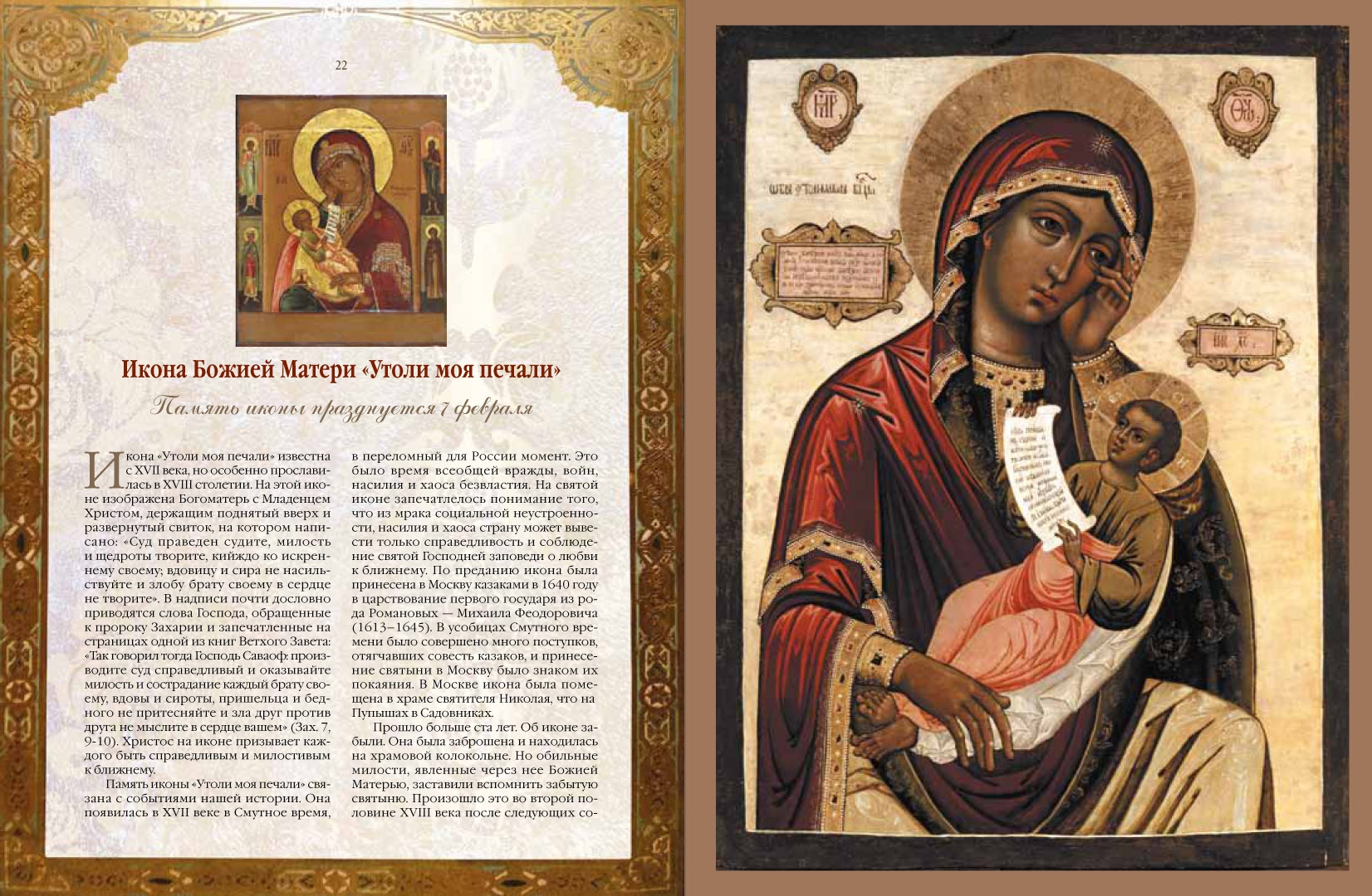 ОписаниеВ своих духовных и повседневных нуждах, в скорбях, опасностях и болезнях мы обращаемся с горячей молитвой к Господу нашему Иисусу Христу, к Божией Матери, святым угодникам, чтимым Русской православной церковью. Почитание их священных изображений является насущной потребностью православного верующего.В книге "Чудотворные иконы" рассказывается о шестидесяти пяти иконах Спасителя, Божией Матери, известных святых. Вы узнаете, какими чудесами прославились Федоровская, Смоленская, Казанская и другие иконы Божией Матери, познакомитесь с житиями широко почитаемых святых: Сергия Радонежского, Серафима Саровского, Ксении Блаженной и многих других молитвенных заступников за нас пред Спасителем. Каждое повествование дополнено молитвой, датой празднования и цветными изображениями икон.В своих духовных и повседневных нуждах, в скорбях, опасностях и болезнях мы обращаемся с горячей молитвой к Господу нашему Иисусу Христу, к Божией Матери, святым угодникам, чтимым Русской православной церковью. Почитание их священных изображений является насущной потребностью православного верующего.В книге "Чудотворные иконы" рассказывается о шестидесяти пяти иконах Спасителя, Божией Матери, известных святых. Вы узнаете, какими чудесами прославились Федоровская, Смоленская, Казанская и другие иконы Божией Матери, познакомитесь с житиями широко почитаемых святых: Сергия Радонежского, Серафима Саровского, Ксении Блаженной и многих других молитвенных заступников за нас пред Спасителем. Каждое повествование дополнено молитвой, датой празднования и цветными изображениями икон.