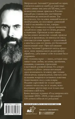 ОписаниеМитрополит Антоний Сурожский по праву считается одним из наиболее известных православных мыслителей ХХ века, а его немногочисленные приезды в Россию каждый раз становились настоящими событиями религиозной жизни. Так получилось, что человек, живший вдали от своей родины, но постоянно думающий о ней и молящийся за нее, говорил о том, что отзывалось в сердце множества людей всего мира чем-то своим, родным и понятным. Прочитав за всю жизнь бесчисленное множество лекций, проводя беседы и проповеди, он никогда не писал свои выступления заранее - подготовкой к ним была сама его жизнь, его бесценный накопленный опыт. При публикации тексты Антония Сурожского всегда проходили лишь минимальную редакторскую обработку, дабы живое слово владыки было сохранено. "По ступеням веры" - книга, которая охватывает темы любви, молитвы, прощения, покаяния, сомнения, стремления к настоящей духовной жизни. Ее доверительная и глубоко личная интонация дают возможность человеку при чтении обновляться, перерождаться, отвечать себе на важные вопросы и познавать поистине божественную силу слова и веры.Издание адресовано не только православным читателям, но и людям, исповедующим другую веру или только еще ищущим к ней путь.Книга выходит в рамках "Года митрополита Антония" (2023-2024), в преддверии 110-летнего юбилея его рождения.СвернутьМитрополит Антоний Сурожский по праву считается одним из наиболее известных православных мыслителей ХХ века, а его немногочисленные приезды в Россию каждый раз становились настоящими событиями религиозной жизни. Так получилось, что человек, живший вдали от своей родины, но постоянно думающий о ней и молящийся за нее, говорил о том, что отзывалось в сердце множества людей всего мира чем-то своим, родным и понятным. Прочитав за всю жизнь бесчисленное множество лекций, проводя беседы и проповеди, он никогда не писал свои выступления заранее - подготовкой к ним была сама его жизнь, его бесценный накопленный опыт. При публикации тексты Антония Сурожского всегда проходили лишь минимальную редакторскую обработку, дабы живое слово владыки было сохранено. "По ступеням веры" - книга, которая охватывает темы любви, молитвы, прощения, покаяния, сомнения, стремления к настоящей духовной жизни. Ее доверительная и глубоко личная интонация дают возможность человеку при чтении обновляться, перерождаться, отвечать себе на важные вопросы и познавать поистине божественную силу слова и веры.Издание адресовано не только православным читателям, но и людям, исповедующим другую веру или только еще ищущим к ней путь.Книга выходит в рамках "Года митрополита Антония" (2023-2024), в преддверии 110-летнего юбилея его рождения.СвернутьСвернуть