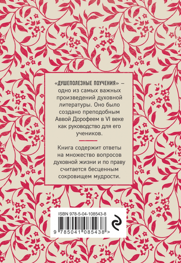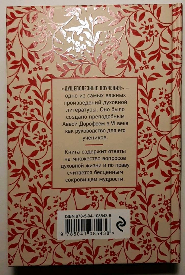 Описание"Душеполезные поучения" – одно из самых важных произведений духовной литературы. Оно было создано преподобным аввой Дорофеем в VI веке как руководство для учеников. Книга содержит ответы на множество вопросов духовной жизни и по праву считается бесценным сокровищем мудрости.На протяжении многих поколений знаменитые наставления аввы Дорофея вели и монахов, и мирян к духовному совершенству. Поэтому на них следует обратить пристальное внимание всем, кто стремится на этот путь в наши дни. Послания преподобного Дорофея написаны много веков тому назад, а потому сложны для понимания, особенно при первом прочтении. В этом издании классический текст дополнен краткими тезисами и пояснениями, призванными помочь читателю и сделать яснее главные моменты наставлений. Издание рекомендовано к публикации Издательским советом Русской Православной Церкви. Номер ИС Р20-031-3388."Душеполезные поучения" – одно из самых важных произведений духовной литературы. Оно было создано преподобным аввой Дорофеем в VI веке как руководство для учеников. Книга содержит ответы на множество вопросов духовной жизни и по праву считается бесценным сокровищем мудрости.На протяжении многих поколений знаменитые наставления аввы Дорофея вели и монахов, и мирян к духовному совершенству. Поэтому на них следует обратить пристальное внимание всем, кто стремится на этот путь в наши дни. Послания преподобного Дорофея написаны много веков тому назад, а потому сложны для понимания, особенно при первом прочтении. В этом издании классический текст дополнен краткими тезисами и пояснениями, призванными помочь читателю и сделать яснее главные моменты наставлений. Издание рекомендовано к публикации Издательским советом Русской Православной Церкви. Номер ИС Р20-031-3388.