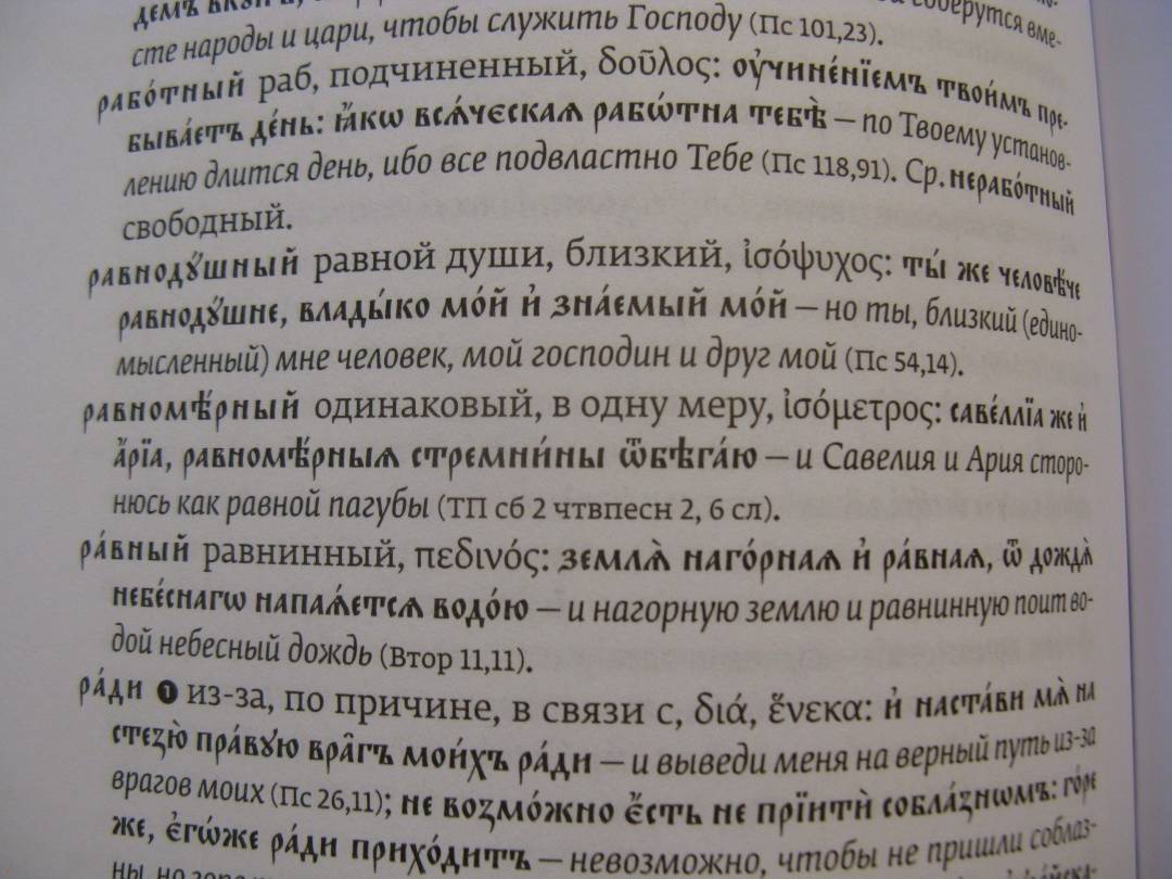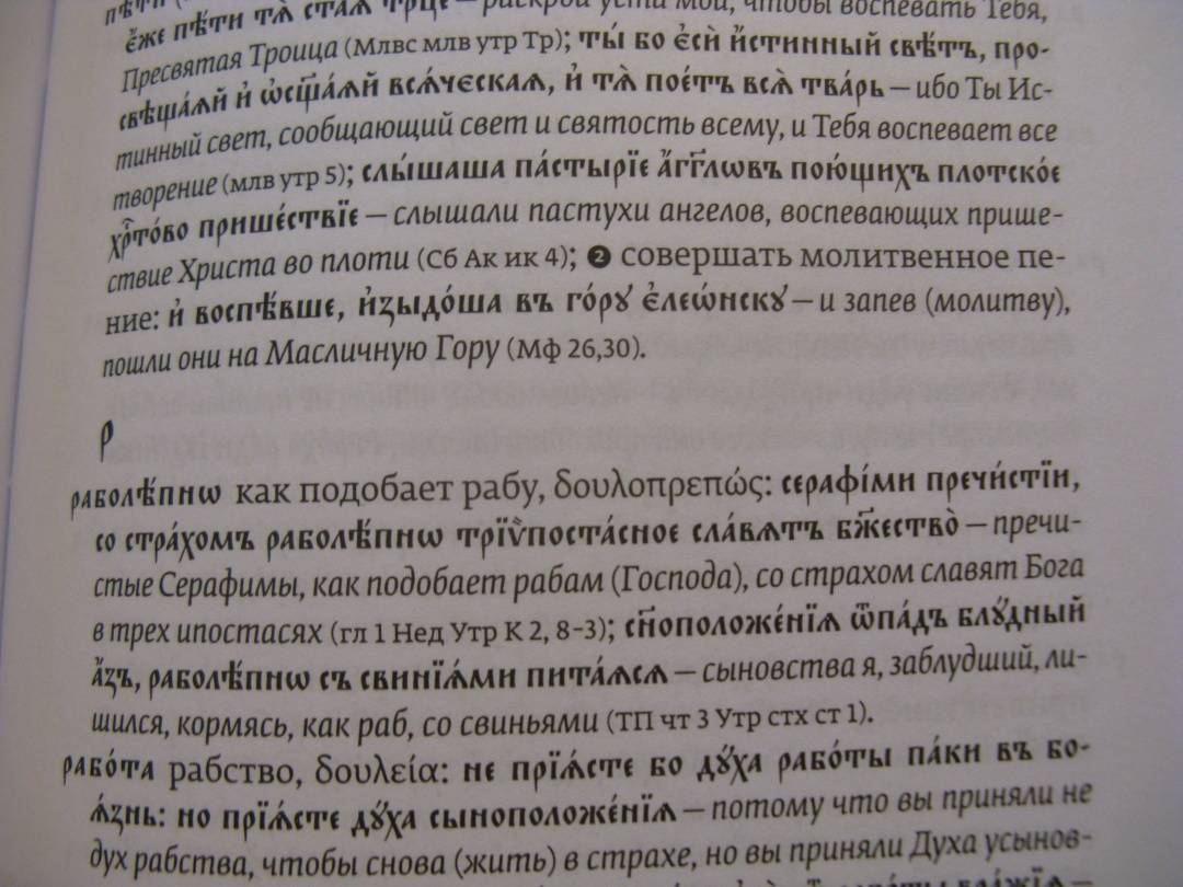 ОписаниеКнига филолога, поэта и переводчика Ольги Александровны Седаковой "Словарь трудных слов из богослужения" выдержала уже несколько переизданий. Такой словарь незаменим для понимания смысла богослужения и литургической поэзии, поскольку объясняет значение самых сложных компонентов церковнославянского языка, а именно паронимов - слов, звучащих одинаково или почти одинаково со словами современного русского языка, но имеющими другое значение. Каждая словарная статья снабжена примерами из текстов богослужения и Священного Писания, переведенными на русский язык часто впервые.Книга будет интересна как церковной, так и светской аудитории - филологам, переводчикам, преподавателям церковнославянского языка, катехизаторам и всем, желающим лучше понять православное богослужение.3-е издание, исправленное и дополненное.Книга филолога, поэта и переводчика Ольги Александровны Седаковой "Словарь трудных слов из богослужения" выдержала уже несколько переизданий. Такой словарь незаменим для понимания смысла богослужения и литургической поэзии, поскольку объясняет значение самых сложных компонентов церковнославянского языка, а именно паронимов - слов, звучащих одинаково или почти одинаково со словами современного русского языка, но имеющими другое значение. Каждая словарная статья снабжена примерами из текстов богослужения и Священного Писания, переведенными на русский язык часто впервые.Книга будет интересна как церковной, так и светской аудитории - филологам, переводчикам, преподавателям церковнославянского языка, катехизаторам и всем, желающим лучше понять православное богослужение.3-е издание, исправленное и дополненное.