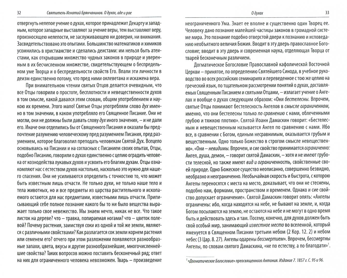 ОписаниеСвятитель Игнатий (Брянчанинов) (1807-1867) - великий русский богослов и проповедник, православный духовный писатель, канонизирован в 1988 г.В 1862 г. увидел свет знаменитый его богословский трактат "Слово о смерти" - одно из главных произведений свт. Игнатия, труд по общему признанию выдающийся. Некоторые положения этой работы потребовали уточнения, и через два года святитель опубликовал приложение к "Слову о смерти" - "Взгляд на мнение западных о духах, аде и рае", в котором автор, традиционно опираясь на писания святых отцов, полемизировал как с мнениями католических и протестантских авторов, так и с искаженным пониманием разбираемых предметов внутри Православной Церкви, природу которых он видел в западном влиянии на православную мысль."...Признается не лишним ознакомить чад Православной Церкви с мнением западных <христиан> о духах, рае и аде, обличить неосновательность и неверность этого мнения", - так кратко святитель Игнатий очертил задачи этого текста.Святитель Игнатий (Брянчанинов) (1807-1867) - великий русский богослов и проповедник, православный духовный писатель, канонизирован в 1988 г.В 1862 г. увидел свет знаменитый его богословский трактат "Слово о смерти" - одно из главных произведений свт. Игнатия, труд по общему признанию выдающийся. Некоторые положения этой работы потребовали уточнения, и через два года святитель опубликовал приложение к "Слову о смерти" - "Взгляд на мнение западных о духах, аде и рае", в котором автор, традиционно опираясь на писания святых отцов, полемизировал как с мнениями католических и протестантских авторов, так и с искаженным пониманием разбираемых предметов внутри Православной Церкви, природу которых он видел в западном влиянии на православную мысль."...Признается не лишним ознакомить чад Православной Церкви с мнением западных <христиан> о духах, рае и аде, обличить неосновательность и неверность этого мнения", - так кратко святитель Игнатий очертил задачи этого текста.