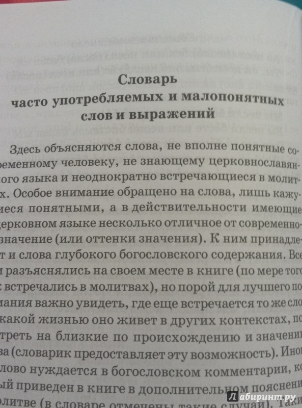 ОписаниеВ книге полностью приводятся тексты рассматриваемых молитв, канонов и песнопений, напечатанные обычным "русским" шрифтом, с проставленными ударениями. Слова, нуждающиеся в объяснении, отмечены цифровым знаком сноски; по возможности краткие пояснения к словам следуют сразу же после текста данного молитвословия без знака сноски. Затем могут следовать и более обширные объяснения или дополнения двух родов, помеченные соответствующими значками. Вслед за этим знаком располагаются объяснения и дополнения содержательного характера, чаще всего богословские. За этим знаком (изредка он встречается и в основных пояснениях к отдельным словам, в скобках) следуют комментарии, относящиеся к особенностям языка.Составитель: Тростникова Е.В.В книге полностью приводятся тексты рассматриваемых молитв, канонов и песнопений, напечатанные обычным "русским" шрифтом, с проставленными ударениями. Слова, нуждающиеся в объяснении, отмечены цифровым знаком сноски; по возможности краткие пояснения к словам следуют сразу же после текста данного молитвословия без знака сноски. Затем могут следовать и более обширные объяснения или дополнения двух родов, помеченные соответствующими значками. Вслед за этим знаком располагаются объяснения и дополнения содержательного характера, чаще всего богословские. За этим знаком (изредка он встречается и в основных пояснениях к отдельным словам, в скобках) следуют комментарии, относящиеся к особенностям языка.Составитель: Тростникова Е.В.