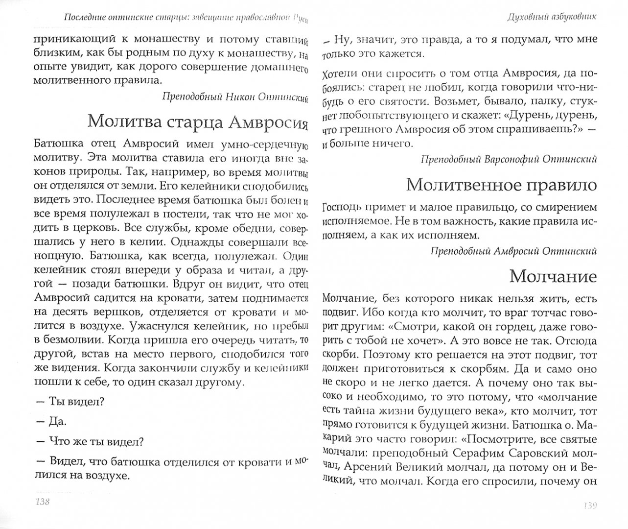 ОписаниеВ сборник вошли высказывания и поучения преподобного Амвросия (1812-1891), преподобного Варсонофия (1845-1913) и преподобноисповедника Никона (1888-1931) - последних из великой плеяды старцев Оптиной пустыни, пастырей и духовников множества православных верующих. Их духовные опыт и мудрость вобрали в себя наследие их наставников, первых Оптинских старцев преподобных Льва, Макария, Моисея и Антония. Духовные проблемы, с которыми сталкивались они и их духовные чада, очень близки к проблемам современных верующих, - именно потому их советы особенно актуальны для читателя сегодня. Мысли последних Оптинских старцев собраны по темам и расположены в алфавитном порядке.В сборник вошли высказывания и поучения преподобного Амвросия (1812-1891), преподобного Варсонофия (1845-1913) и преподобноисповедника Никона (1888-1931) - последних из великой плеяды старцев Оптиной пустыни, пастырей и духовников множества православных верующих. Их духовные опыт и мудрость вобрали в себя наследие их наставников, первых Оптинских старцев преподобных Льва, Макария, Моисея и Антония. Духовные проблемы, с которыми сталкивались они и их духовные чада, очень близки к проблемам современных верующих, - именно потому их советы особенно актуальны для читателя сегодня. Мысли последних Оптинских старцев собраны по темам и расположены в алфавитном порядке.