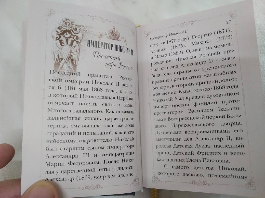 ОписаниеВ данной подарочной книге рассказывается о жизни и подвиге святой царской семьи - страстотерпцах - последнем российском императоре-царе Николае II, его супруге императрице Александре Федоровне и их детях - великих княжнах Ольге, Татьяне, Марии, Анастасии и цесаревиче Алексее. С момента трагической гибели царской семьи прошел уже век, но с каждым годом ее почитание православными христианами только возрастает.Составитель: Сергей Милов.В данной подарочной книге рассказывается о жизни и подвиге святой царской семьи - страстотерпцах - последнем российском императоре-царе Николае II, его супруге императрице Александре Федоровне и их детях - великих княжнах Ольге, Татьяне, Марии, Анастасии и цесаревиче Алексее. С момента трагической гибели царской семьи прошел уже век, но с каждым годом ее почитание православными христианами только возрастает.Составитель: Сергей Милов.