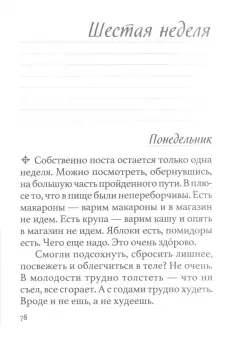 ОписаниеКнига известного миссионера и публициста протоиерея Андрея Ткачева «Постовой дневник» представляет собой изложение личного опыта прохождения Великого поста. День за днем отец Андрей переживает события Святой Четыредесятницы, размышляет над молитвами, днями памяти святых и Священным Писанием. И через призму постного делания обращает мысленный взор на нашу жизнь, на происходящее в его душе и душах пасомых, раскрывает истинный смысл великопостного богослужения в духовной жизни верных чад Церкви.«Старался не писать много о себе. «Я видел», «я думал», «я встретил»... Совсем без этого нельзя, иначе это бы и не был дневник. Но это не было главным. Хотелось говорить о Писании, о пользе душ, о попытках обновиться. Хотелось, чтобы «мой дневник» был и «твой дневник», поскольку писался он изначально не в стол и не для личного перечитывания, а для прочтения другими», – говорит о своем сочинении автор.2-е издание.Книга известного миссионера и публициста протоиерея Андрея Ткачева «Постовой дневник» представляет собой изложение личного опыта прохождения Великого поста. День за днем отец Андрей переживает события Святой Четыредесятницы, размышляет над молитвами, днями памяти святых и Священным Писанием. И через призму постного делания обращает мысленный взор на нашу жизнь, на происходящее в его душе и душах пасомых, раскрывает истинный смысл великопостного богослужения в духовной жизни верных чад Церкви.«Старался не писать много о себе. «Я видел», «я думал», «я встретил»... Совсем без этого нельзя, иначе это бы и не был дневник. Но это не было главным. Хотелось говорить о Писании, о пользе душ, о попытках обновиться. Хотелось, чтобы «мой дневник» был и «твой дневник», поскольку писался он изначально не в стол и не для личного перечитывания, а для прочтения другими», – говорит о своем сочинении автор.2-е издание.